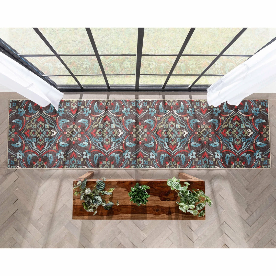 The King’s Court collection is all about convenient decoration for a busy home. The flat weave polyester top and recycled cotton backing trap less dirt and is more resistant to wear. These rugs are machine washable, fade resistant, and serged on all sides for durability. They are easy to maintain and built to last. And with a variety of patterns from cutting edge to modern to traditional to kitchen cozy, you can put them anywhere.