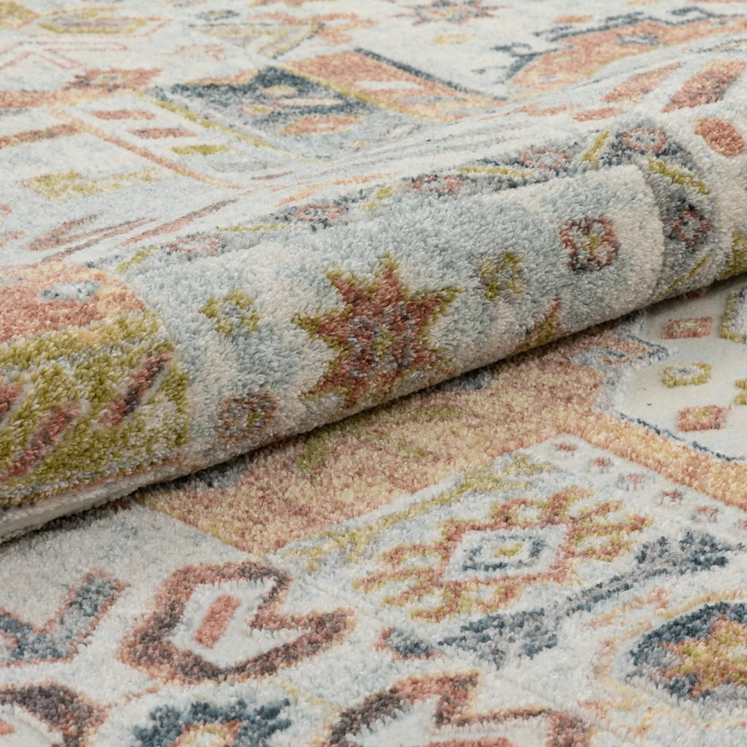 - Distressed patchwork medallion pattern with a Bohemian edge.