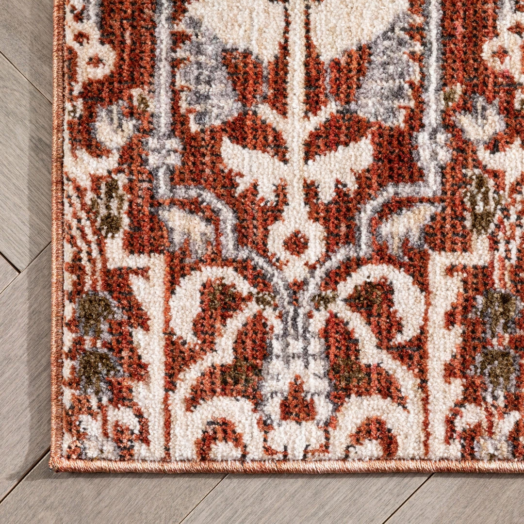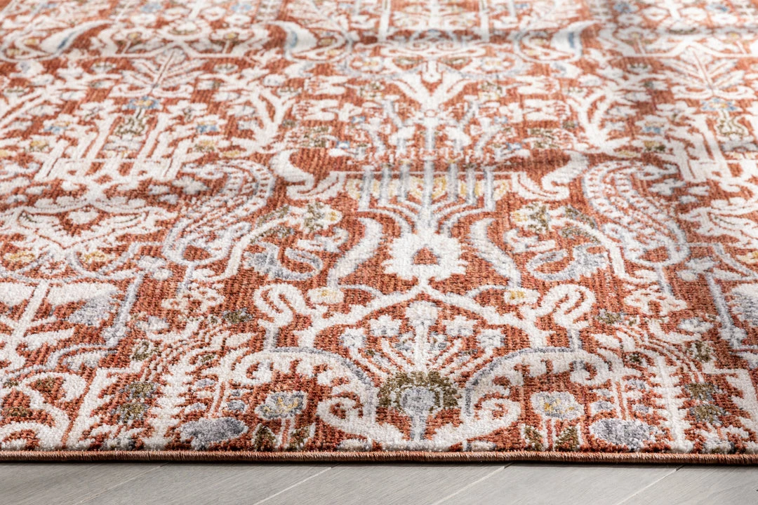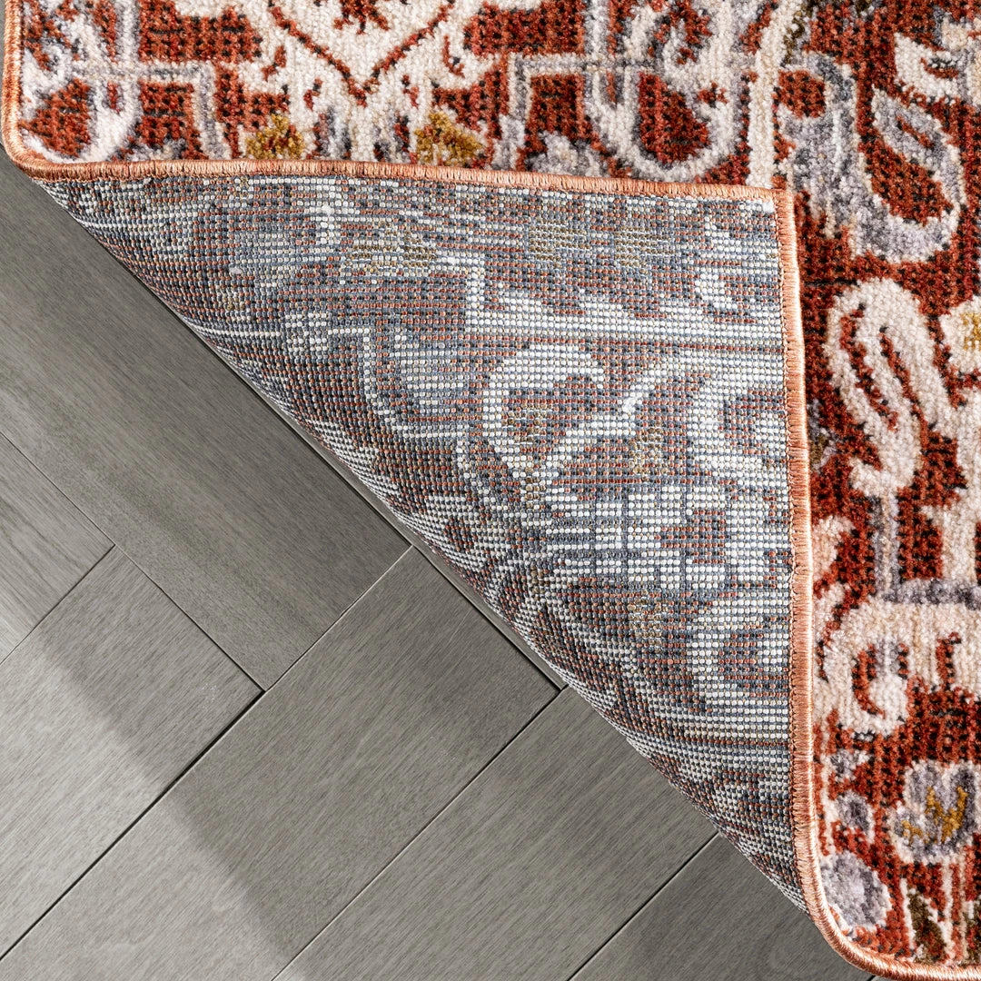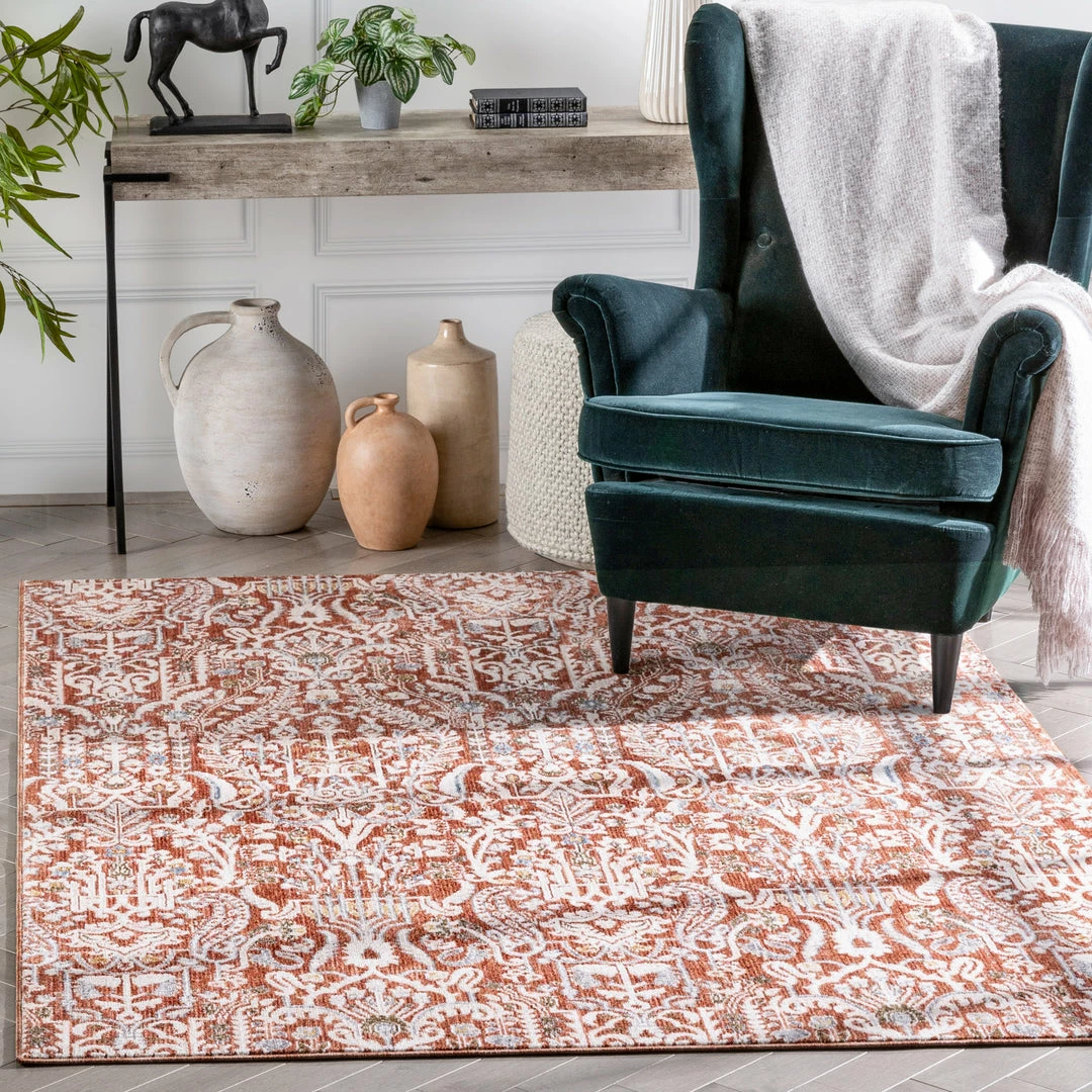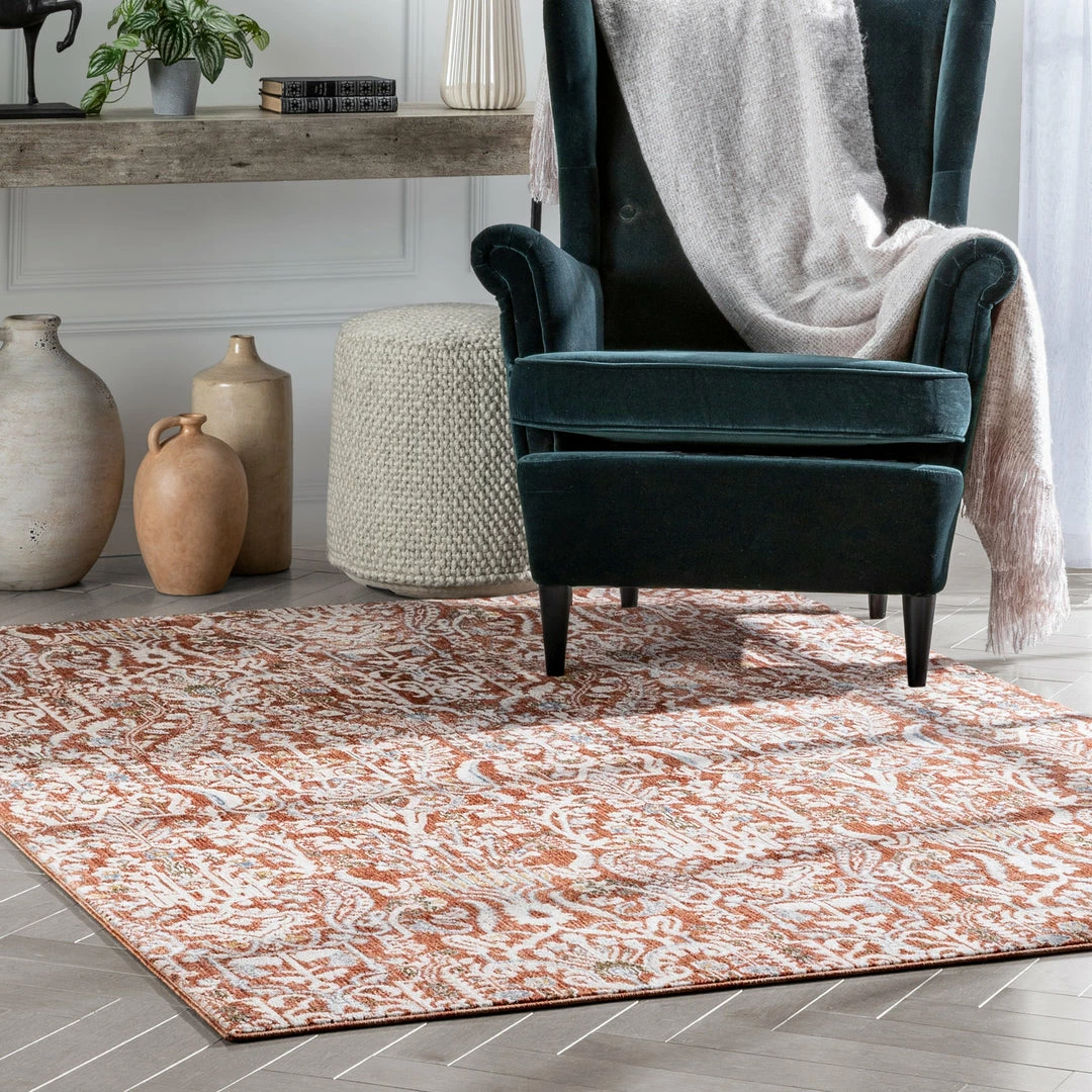 Well Woven Ahote Vintage Floral Damask Pattern Rust Textured Rug Global