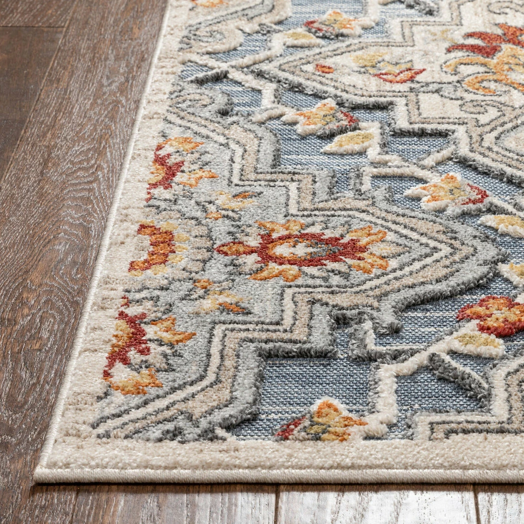 Well Woven Aleria Traditional Floral Geometric Beige Grey Multi Flatweave High-Low Rug