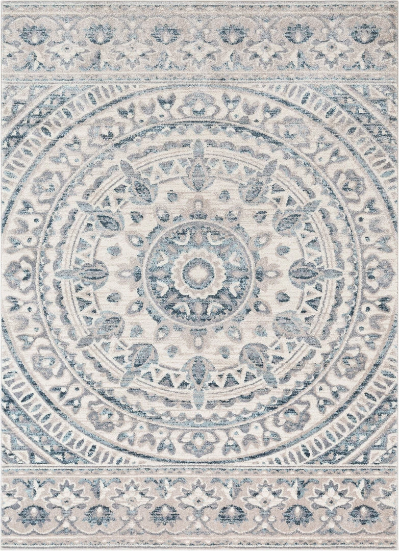 Sydney Vintage is a bright and trendy collection with both modern geometric and updated traditional patterns. Soft, warm, neutral tones are accented with bright, cool, blues and warm reds and yellows. Faded designs add that extra something and a plush 0.5 pile of air twist frieze polypropylene gives an exceptionally textured look. This yarn is soft, stain resistant, and does not shed or fade.