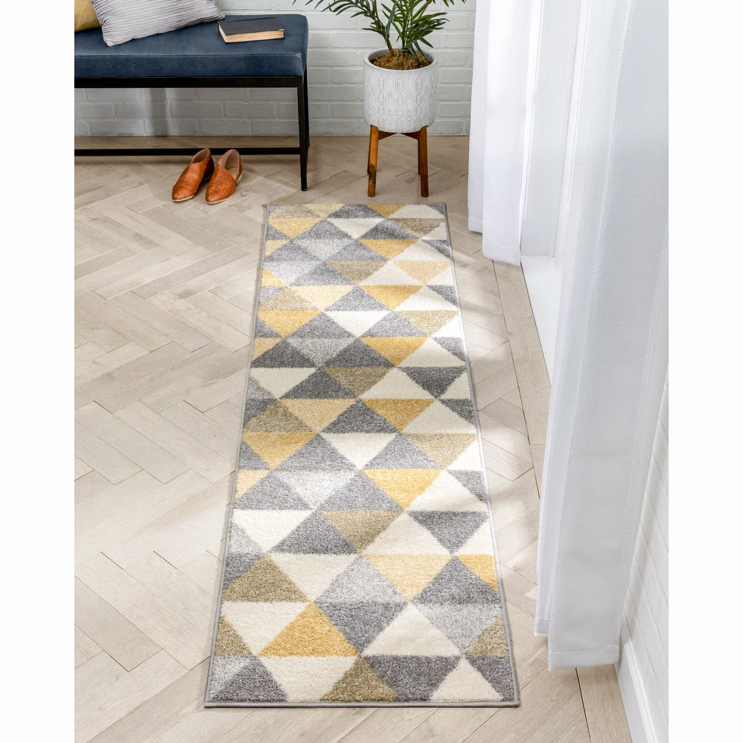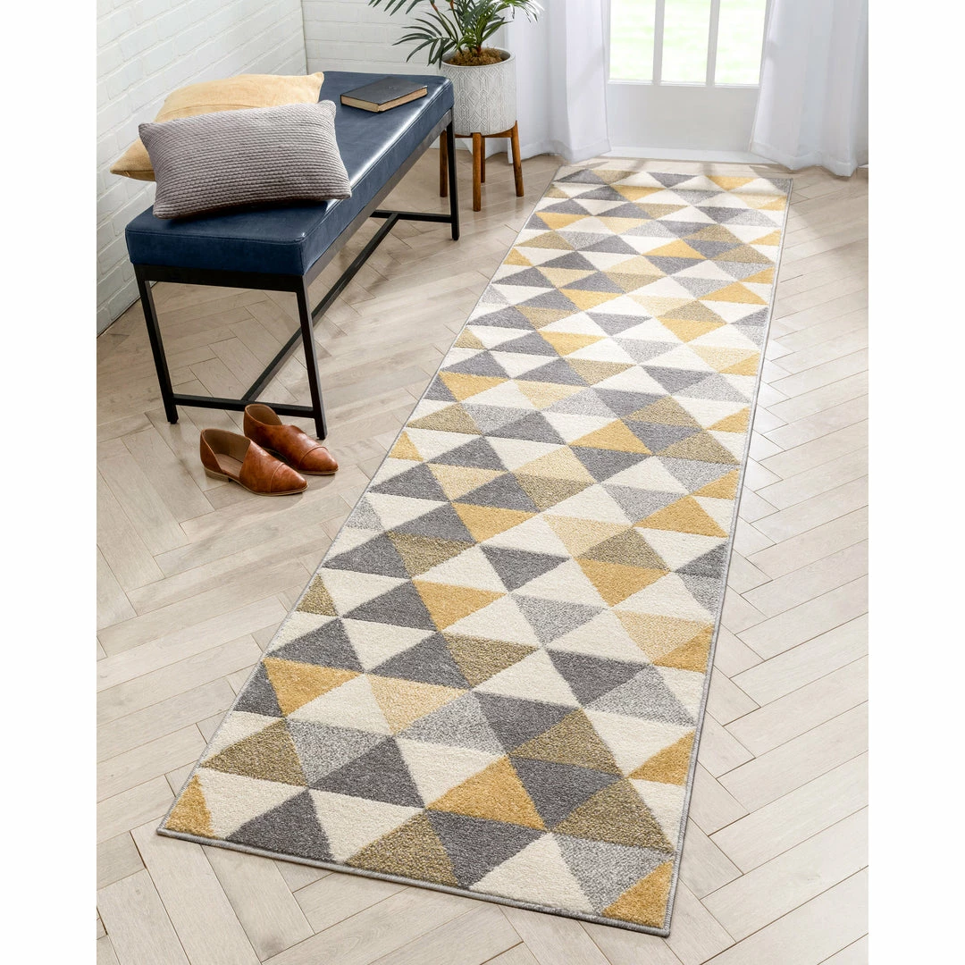 The Mystic Collection is an exciting array of trendy geometric patterns woven in a combination of classic neutral tones and bright, fun colors. From ultra modern swoops, lines and angles to the simple tile or Moroccan trellis, there is a pattern for every room. A 0.4″ pile of air twist frieze polypropylene gives a textured look and soft feel. The yarn is stain resistant and doesn’t shed or fade over time. Durable and easy to clean, these area rugs are made to last.