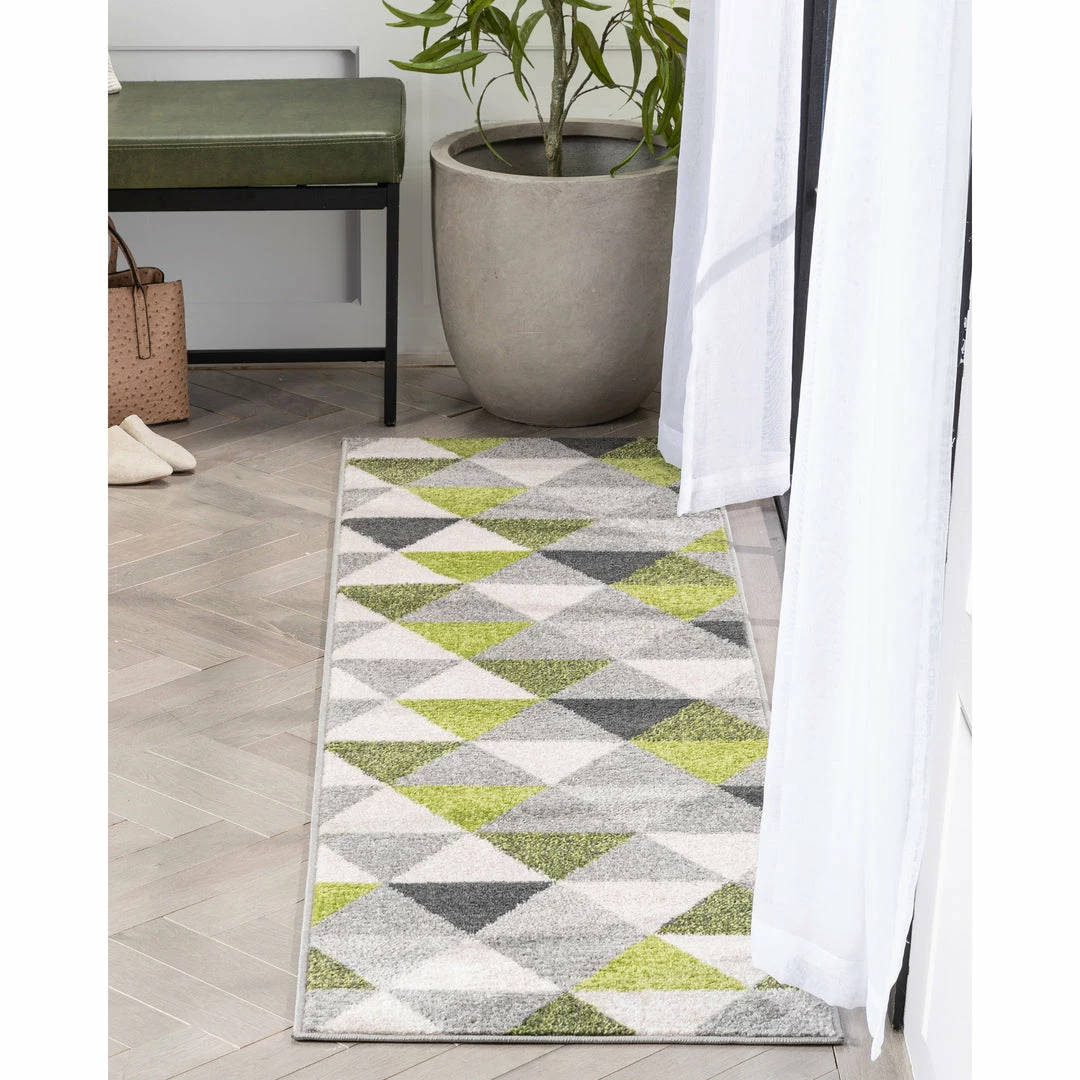 The Mystic Collection is an exciting array of trendy geometric patterns woven in a combination of classic neutral tones and bright, fun colors. From ultra modern swoops, lines and angles to the simple tile or Moroccan trellis, there is a pattern for every room. A 0.4″ pile of air twist frieze polypropylene gives a textured look and soft feel. The yarn is stain resistant and doesn’t shed or fade over time. Durable and easy to clean, these area rugs are made to last.