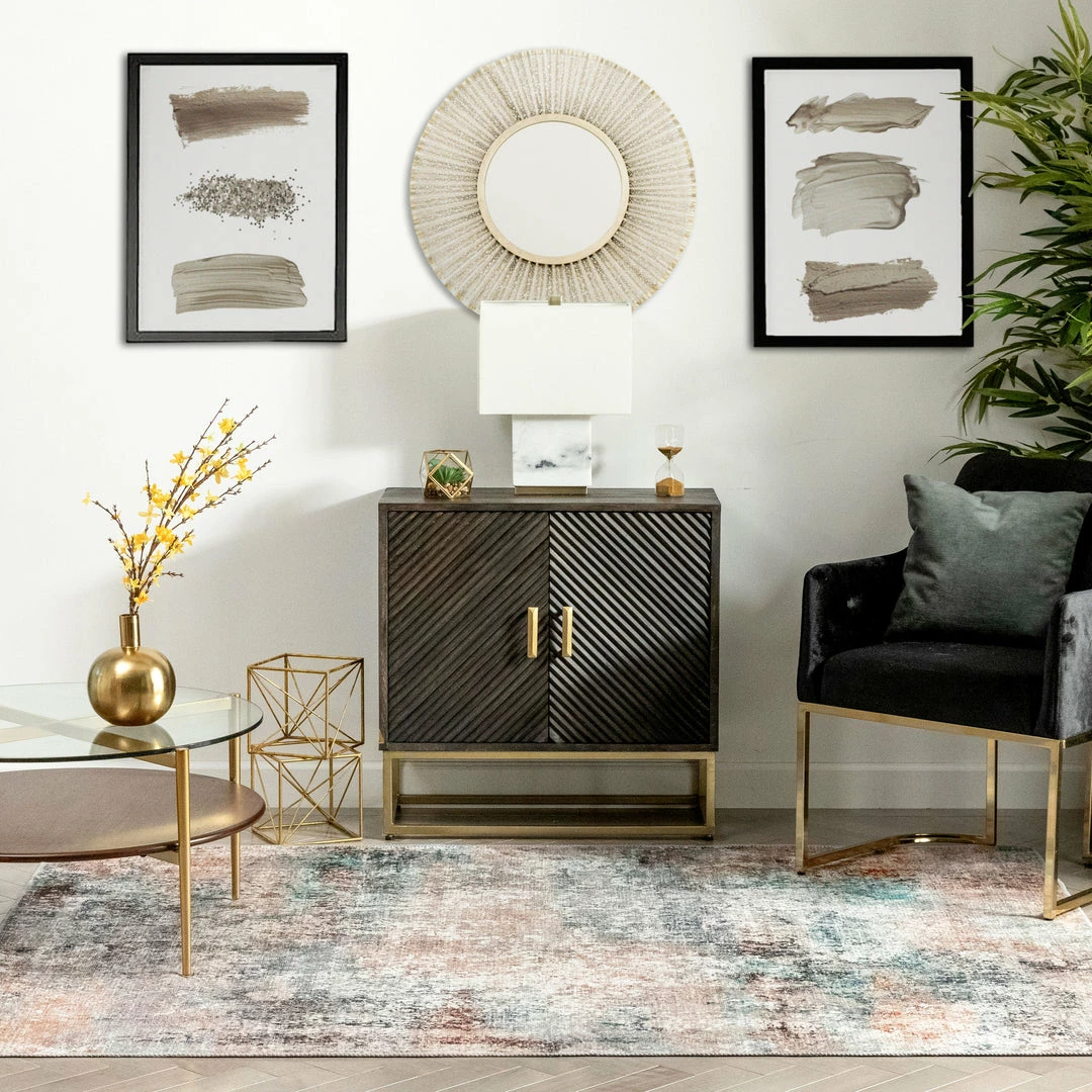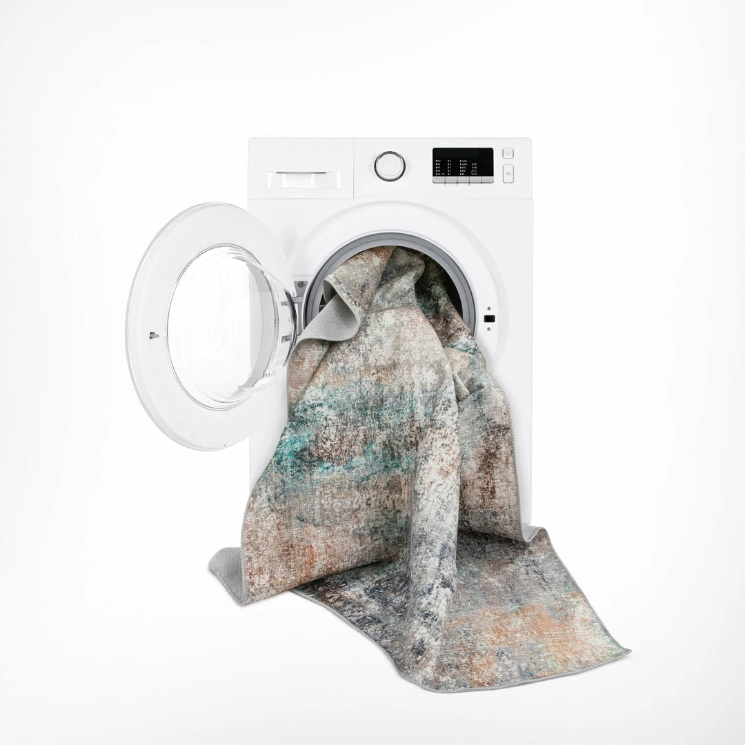Well Woven Amesti Machine Washable Contemporary Distressed Abstract Light Blue Flat-Weave Distressed Rug Global