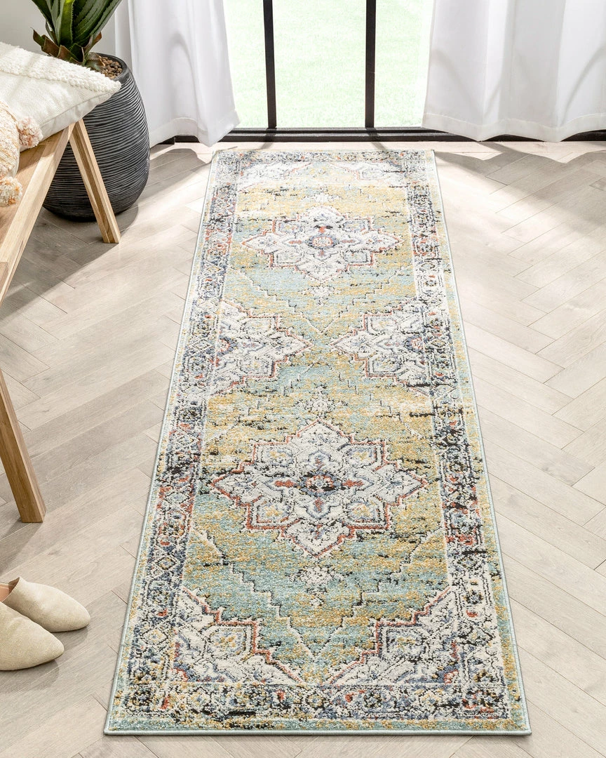 With classic patterns artfully distressed and detailed geometric designs that can remake a space, the Envie collection is at home with just about any modern decor. The soft, bright pile is stain-resistant and the natural jute backing is safe for all flooring.