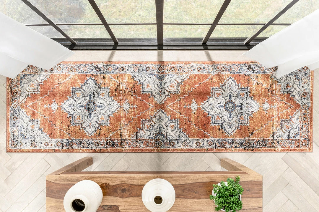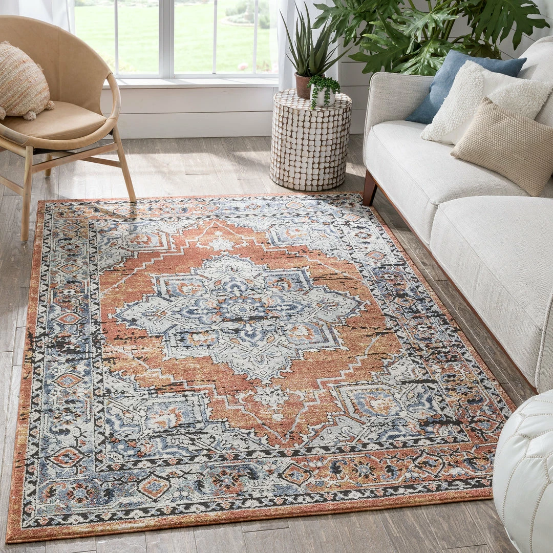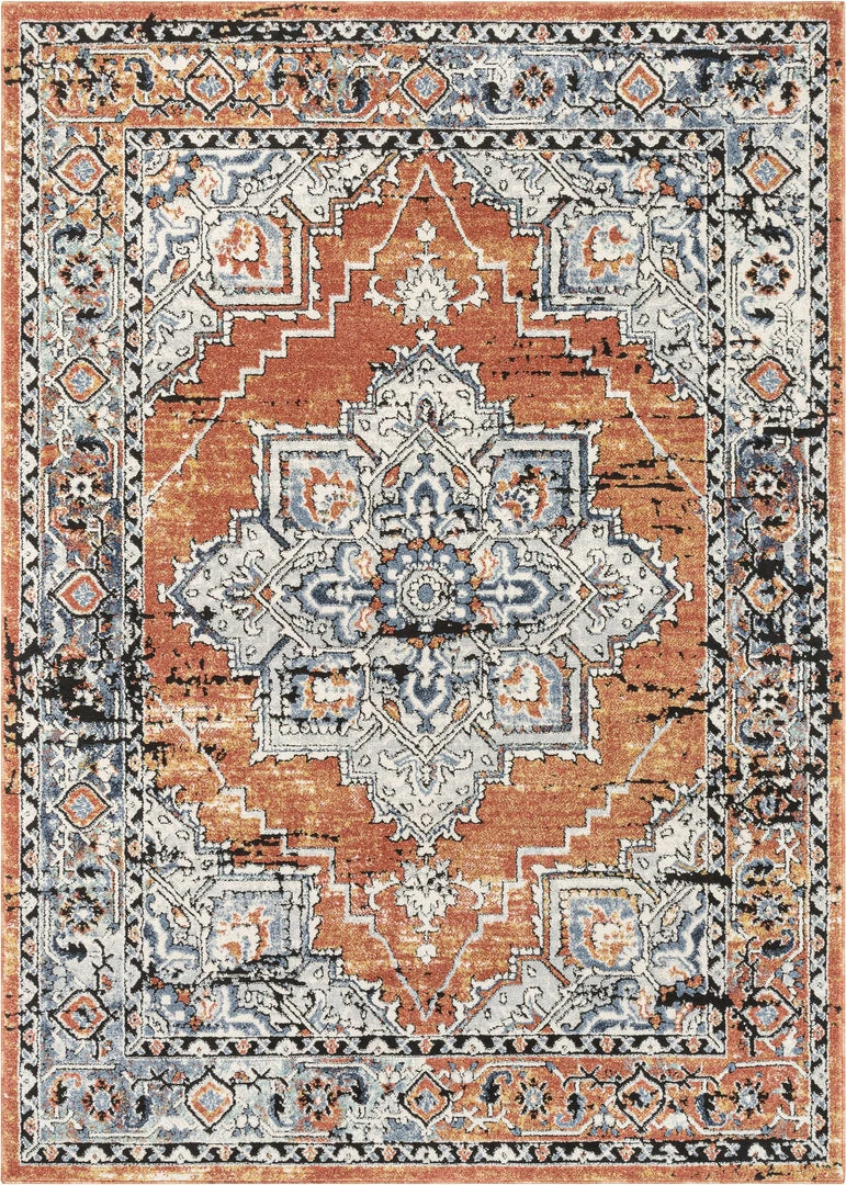 Well Woven Andria Vintage Medallion Botanical Border Rust Rug Global