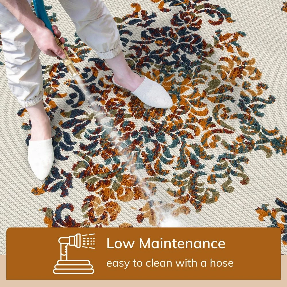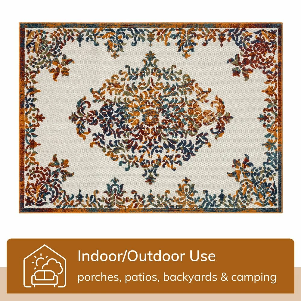 Well Woven Arid Modern Medallion Persian Indoor/Outdoor Ivory High-Low Rug