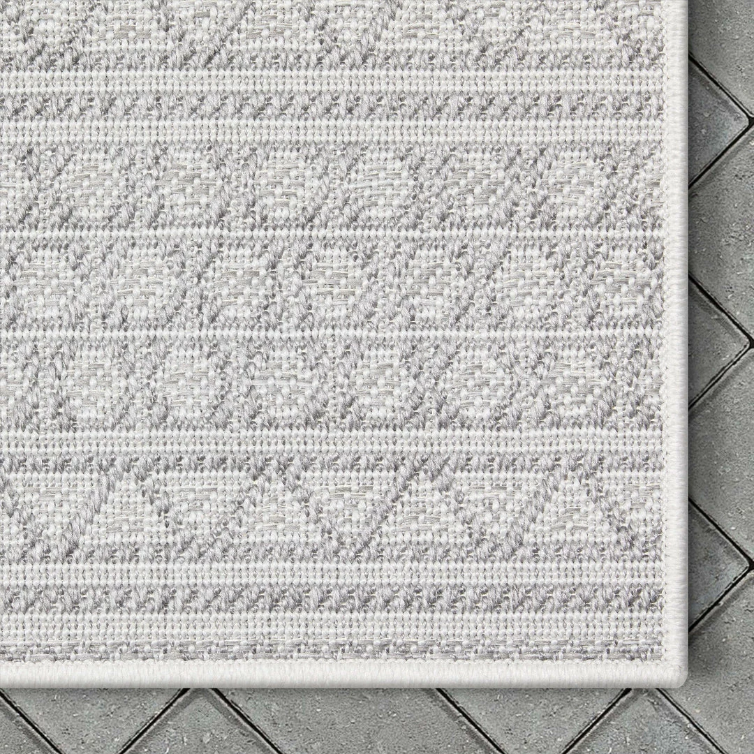 The subtle chunky texture derived from a high-low weaving technique adds visual interest to serene patterns and colors in the Fallon Collection, channeling the soothing yet stimulating feel of a coastal retreat or a cabin getaway. Designed for indoor or outdoor use, these durable, flat-weave rugs feature UV-protection, water-resistance, anti-fade colors, and stain-resistance, so they will last through sunny days, rain showers, and years of happy feet (or paws) treading across the surface.