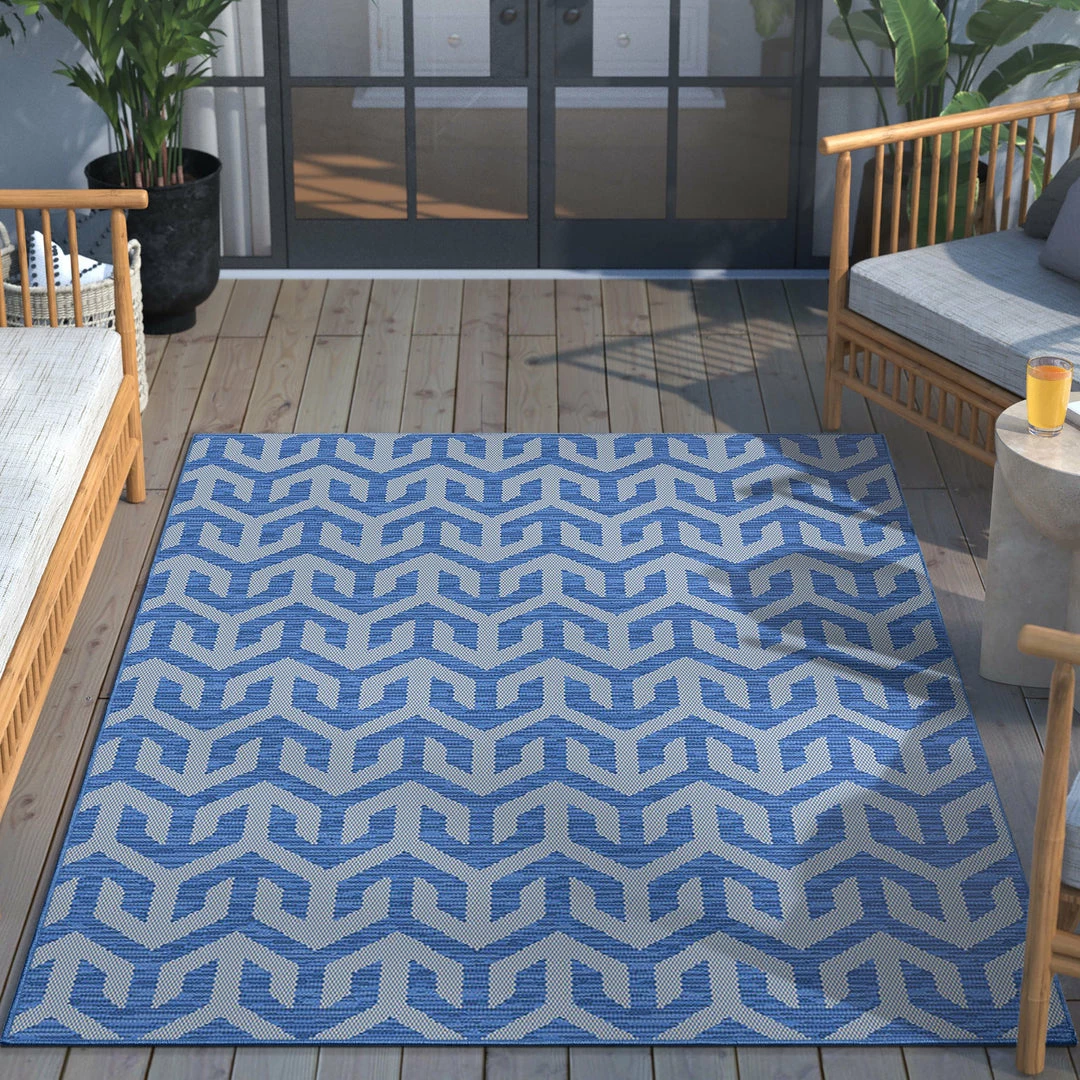 Well Woven Atlantis Modern Stripes Indoor/Outdoor Blue Flat-Weave Rug