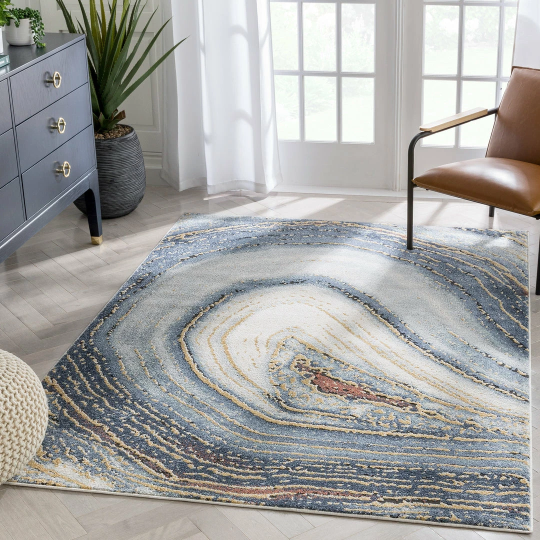 Well Woven Aversa Geometric Abstract Waves Blue Rug