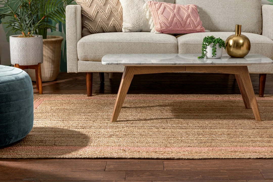 The Larkspur Collection’s natural jute rugs radiate a beachy warmth that makes the perfect finish to a coastal look. With a classic border pattern, they work to ground and center the space. Each piece is hand-braided with a love of craft that shows in the subtle but unique differences between each individual rug.
