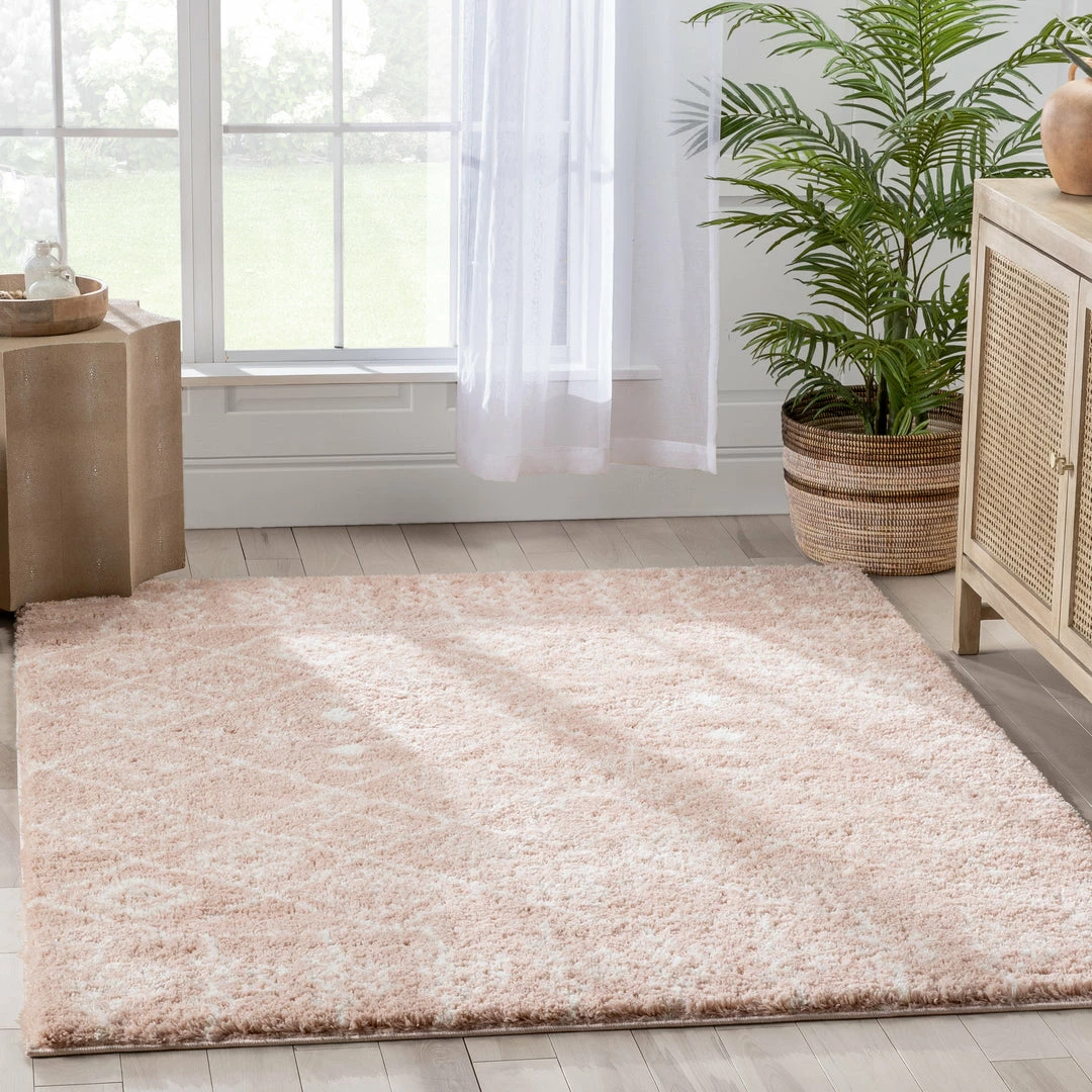 Sink your toes into the 100% polyester microfiber pile of the Celeste collection. These rugs have a plush look and soft, luxurious feel with a unique shimmer effect when tousled. The yarn is stain resistant and doesn’t shed or fade over time. A 100% jute backing is safe for wood floors and all four sides of the rug are serged for improved durability.