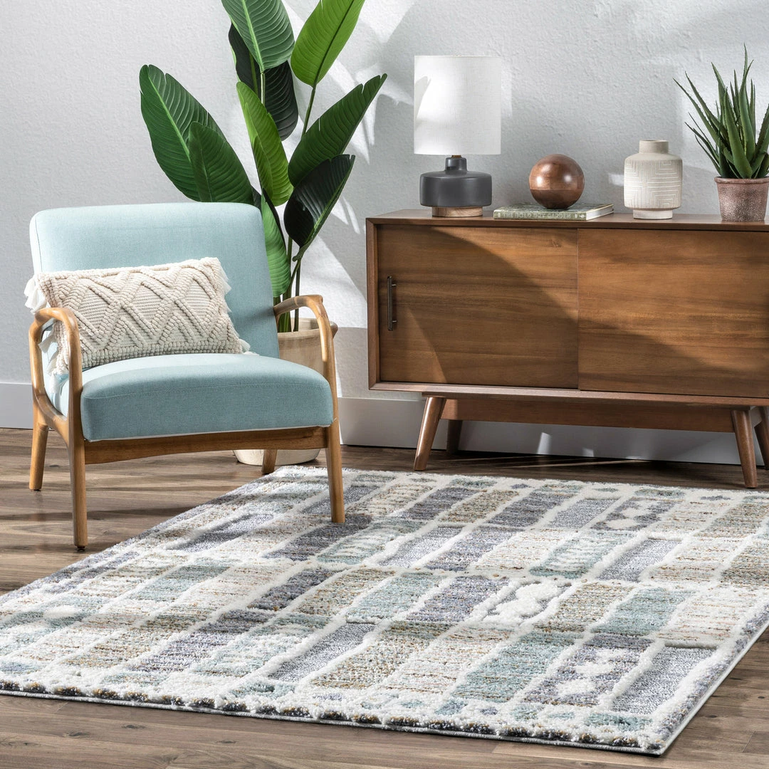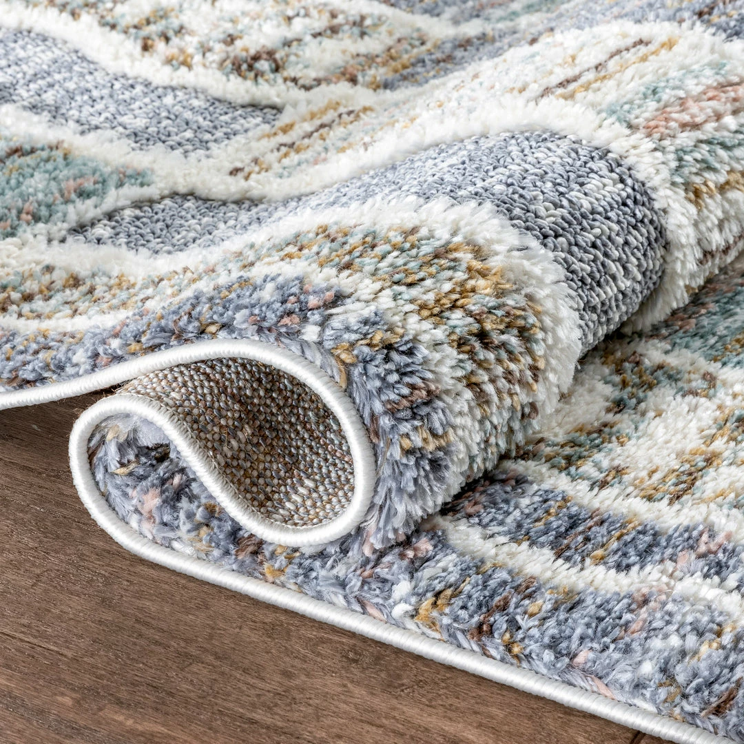 Well Woven Brontes Tribal Geometric Grey High-Low Shag Rug Global