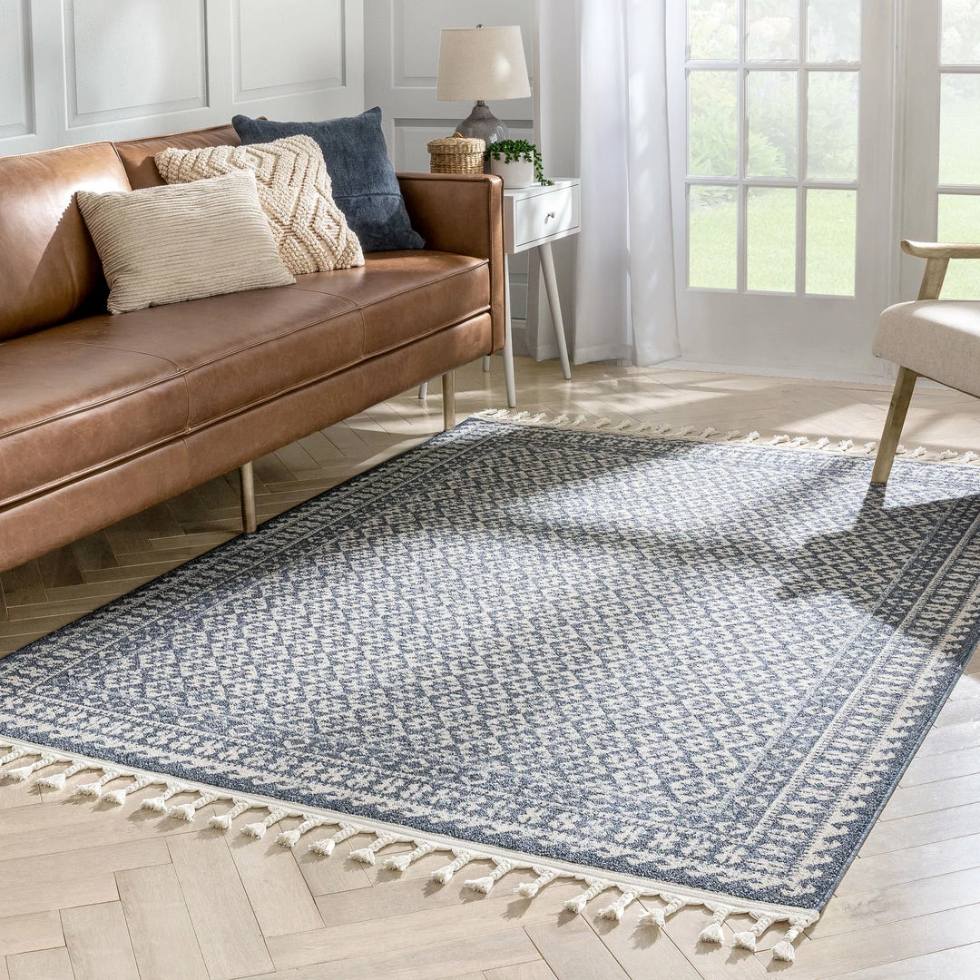 Well Woven Callista Tribal Trellis Pattern Blue Kilim-Style Rug