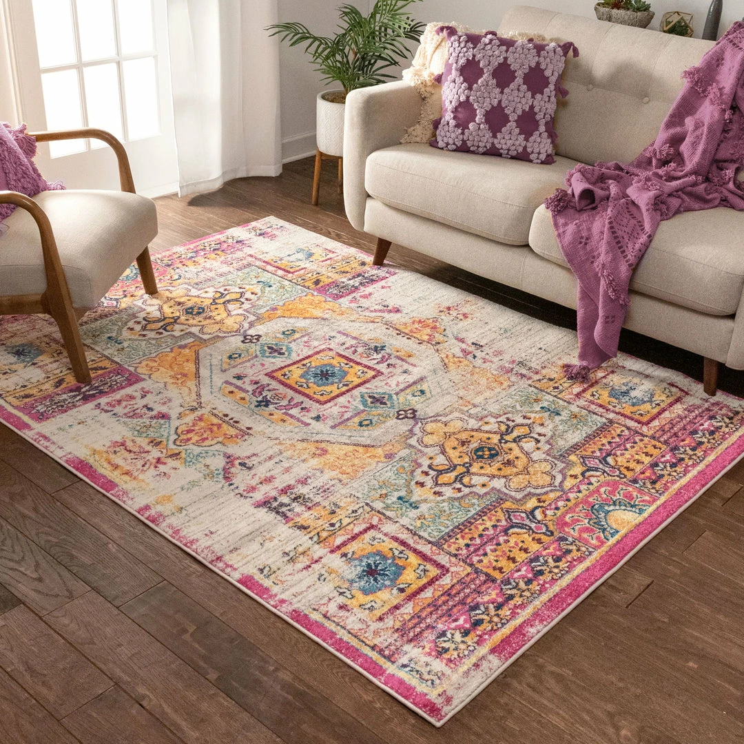 The Laurent Collection is an eclectic combination of designs, from boho modern to overdyed Persian, woven in a dazzling array of ultra modern colors. Fine, air twisted polypropylene fiber gives a plush 0.5″ pile that is soft, stain resistant, and doesn’t shed or fade over time. The rug’s 100% jute backing is safe for wood floors and all four sides of the rug are serged for improved durability. 100% polypropylene power loomed in Turkey. Extremely durable and very easy to clean, made to last for years.