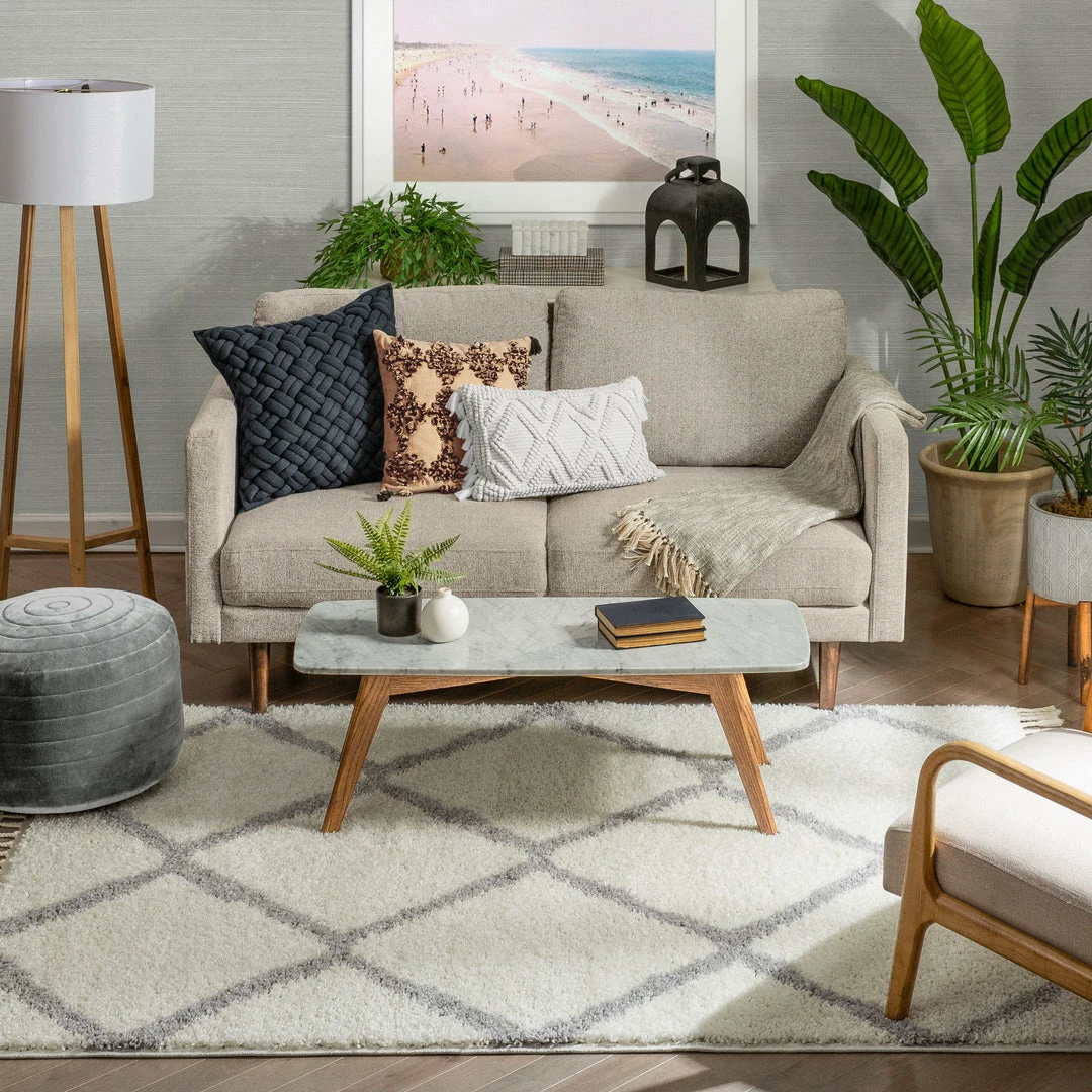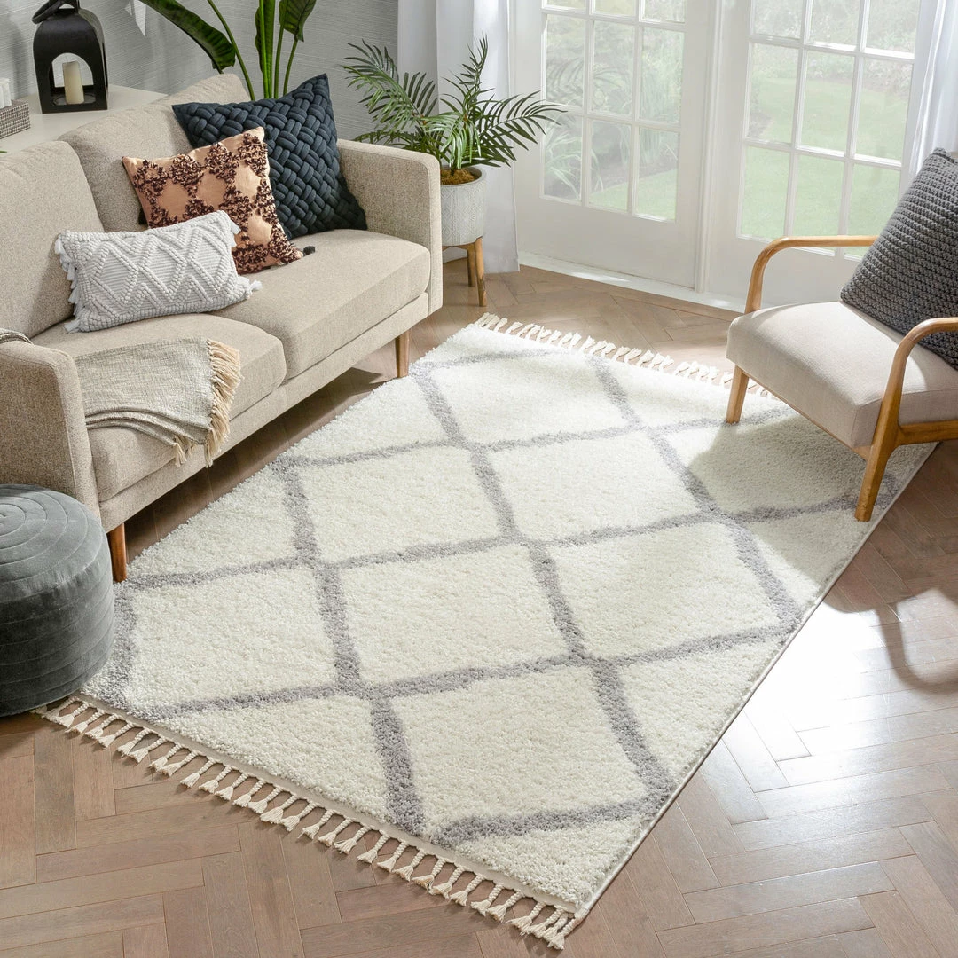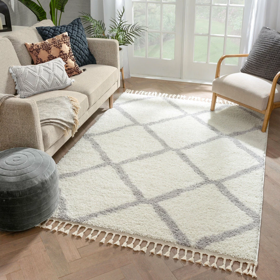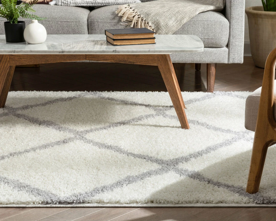 Well Woven Celosia Moroccan Trellis Shag White Rug