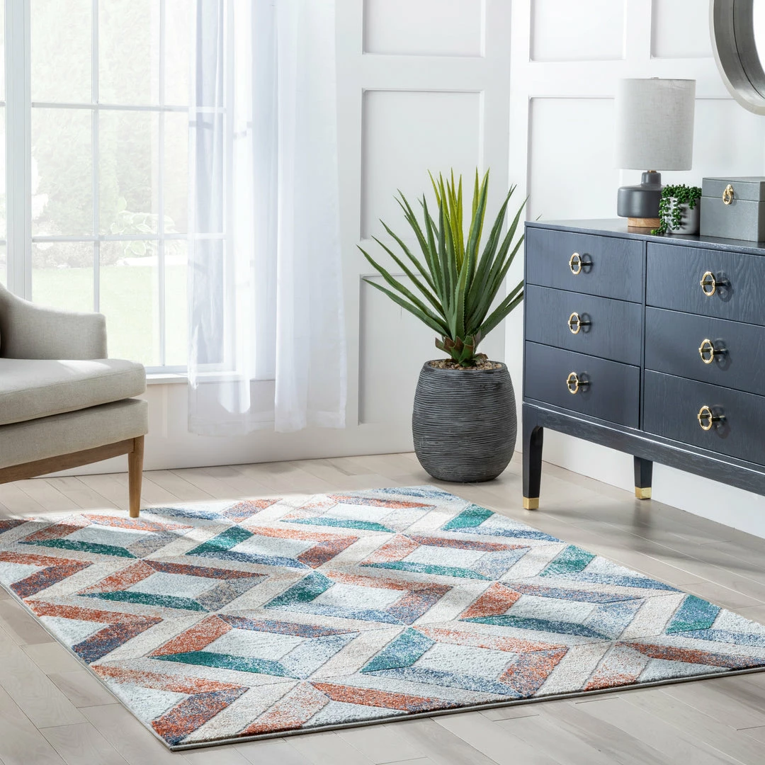 Well Woven Chihua Geometric Blue Multi High-Low Rug