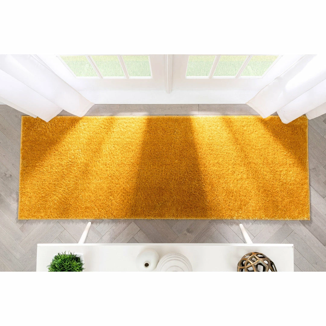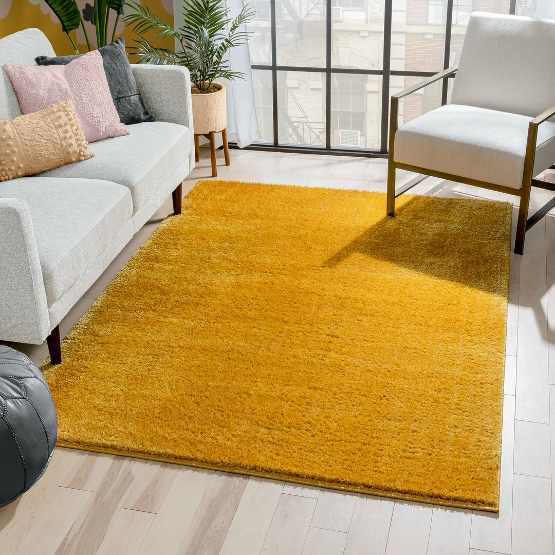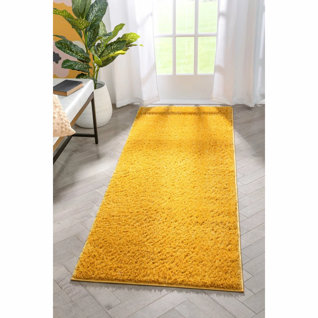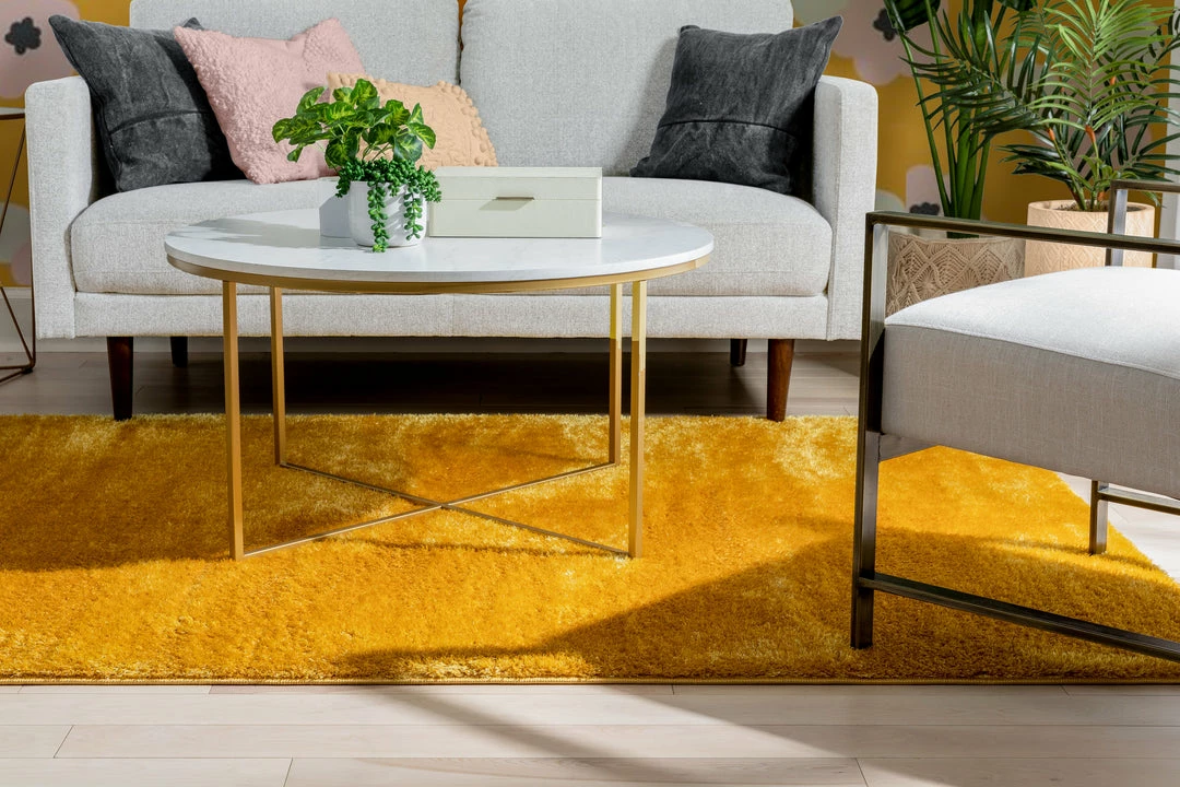 Well Woven Chroma Glam Solid Ultra Soft Yellow Multi-Textured Shimmer Pile Shag Rug