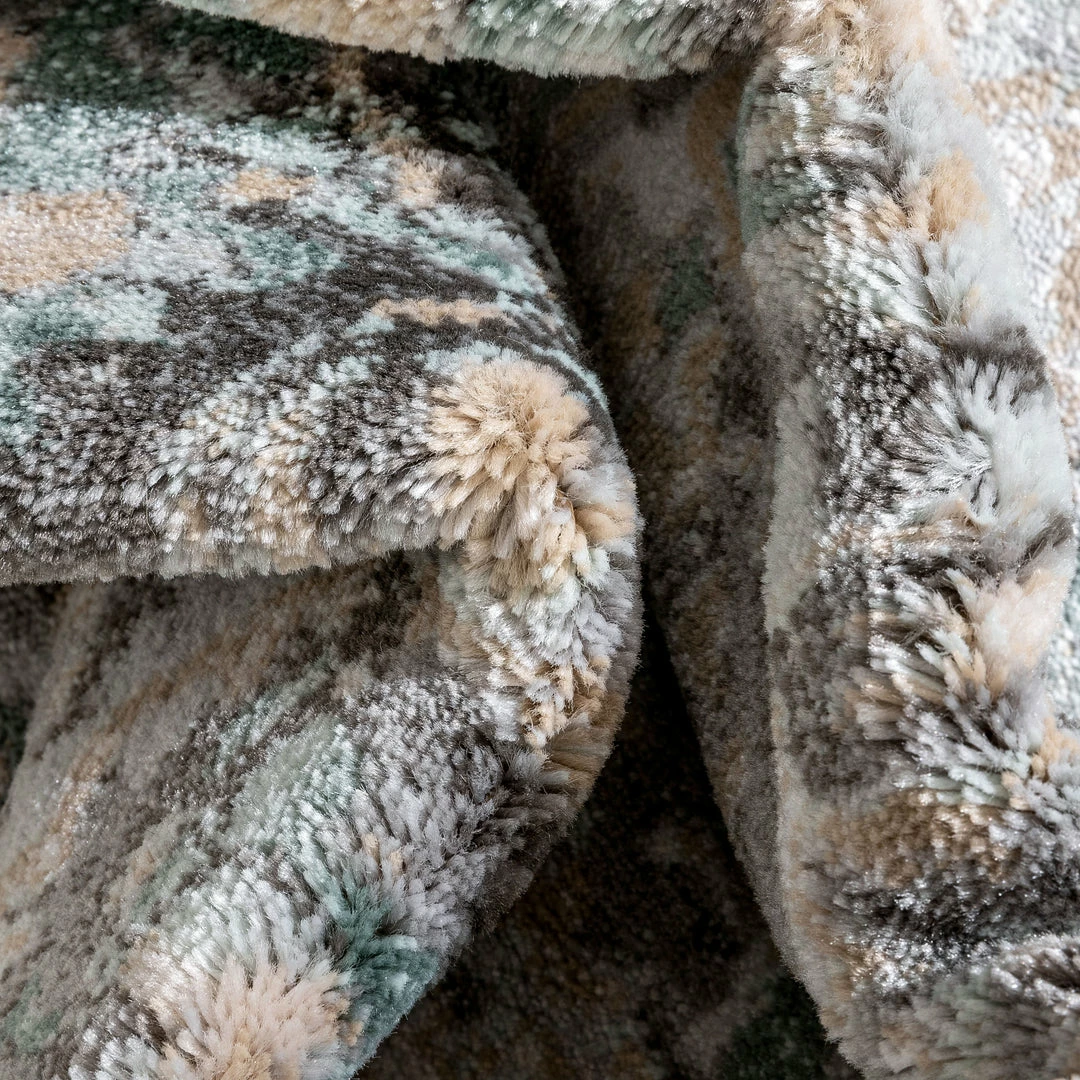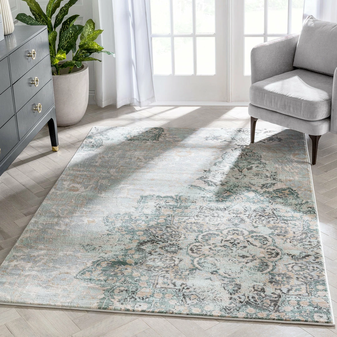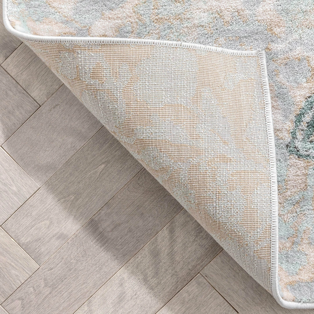 A unique collection where vintage soul meets modern traditional styling add a burst of personality and complete the look of any room. The Ciato Blue features an oversized version of a classic damask pattern, updated with a modern and subtle color palette of light and dark mint blue and dusty gold. These colors are offset and complemented with grey, beige and neutral ivory. Additionally, an intentionally distressed brush effect lends a look to the rug that is feels both modern and vintage.