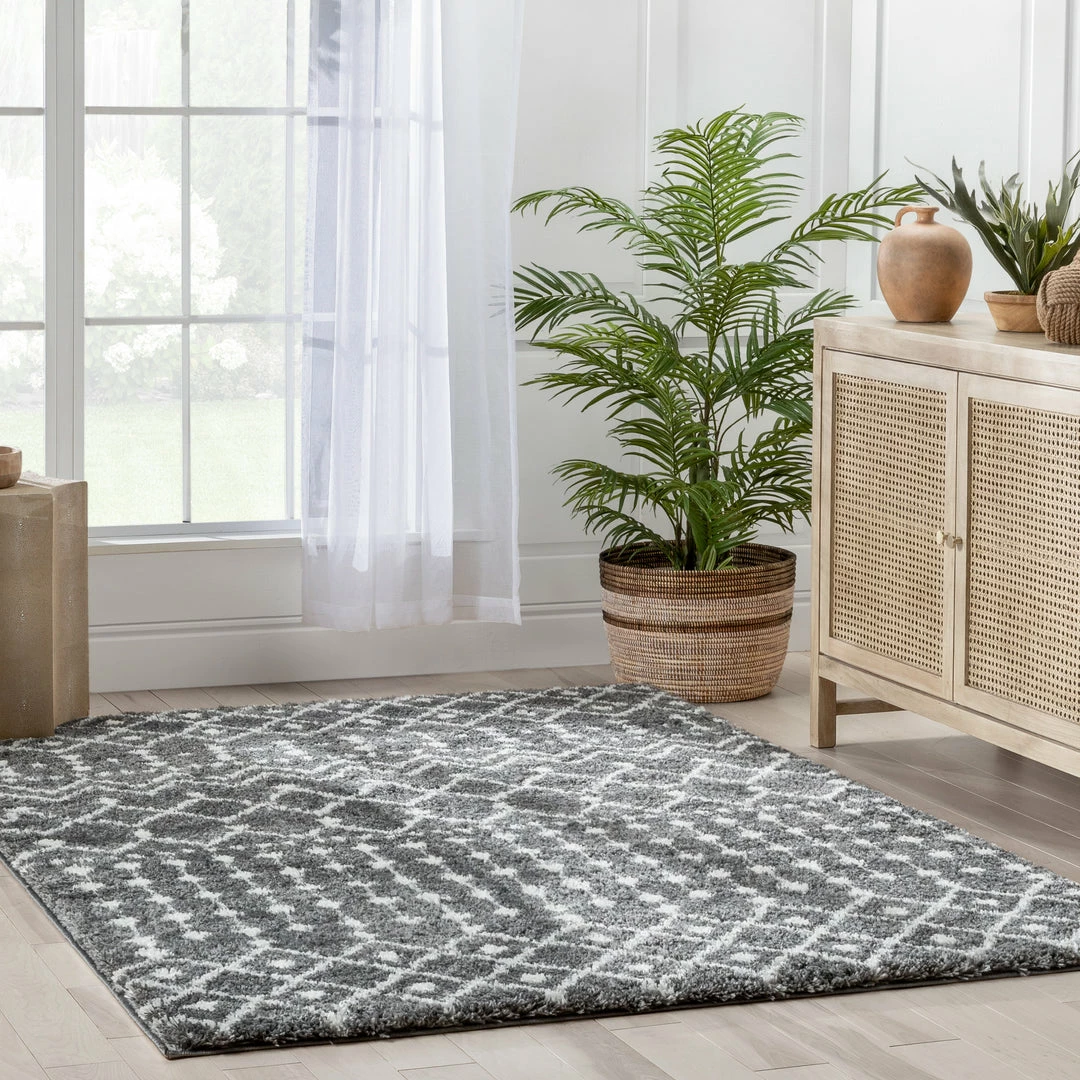 Sink your toes into the 100% polyester microfiber pile of the Celeste collection. These rugs have a plush look and soft, luxurious feel with a unique shimmer effect when tousled. The yarn is stain resistant and doesn’t shed or fade over time. A 100% jute backing is safe for wood floors and all four sides of the rug are serged for improved durability.