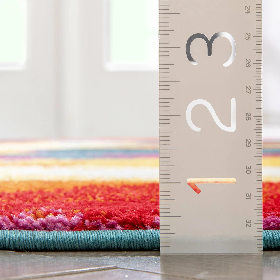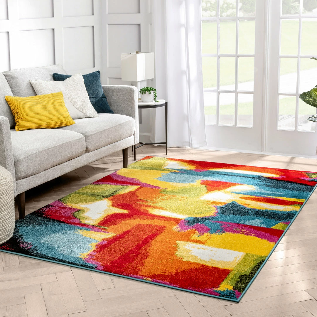 Long live good design! The Viva collection is a playful expression of all the bright, rainbow-colored fun life has to offer. Exciting geometric designs range in style from abstract scenes of nature to dazzling, abstract patterns. Vibrant multicolored dyes will make these rugs the centerpiece of any room and a plush 0.4″ pile of air twist frieze polypropylene gives an exceptionally textured look. The yarn is soft, stain resistant, and doesn’t shed or fade over time. Perfectly suited for your decor and for your busy lifestyle.