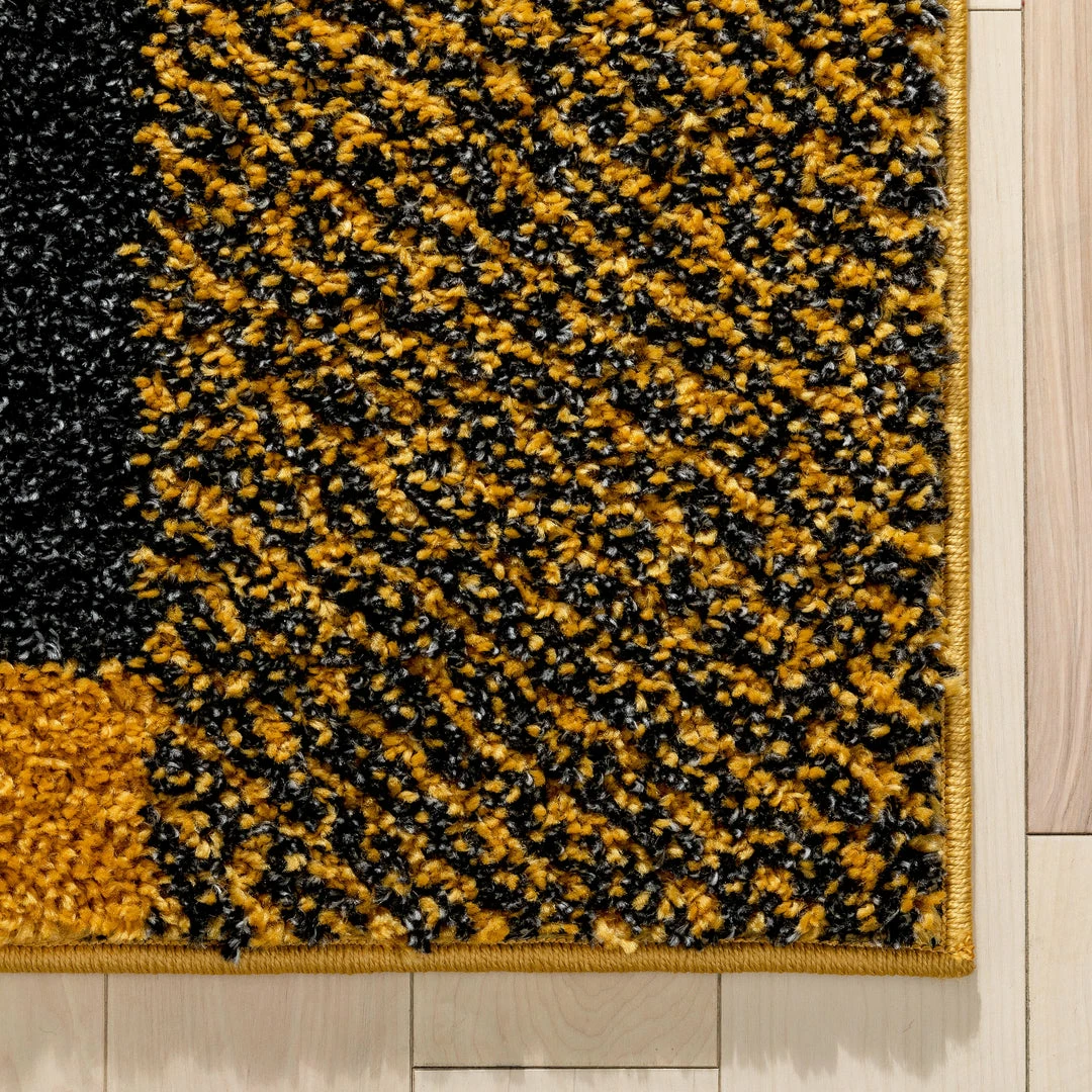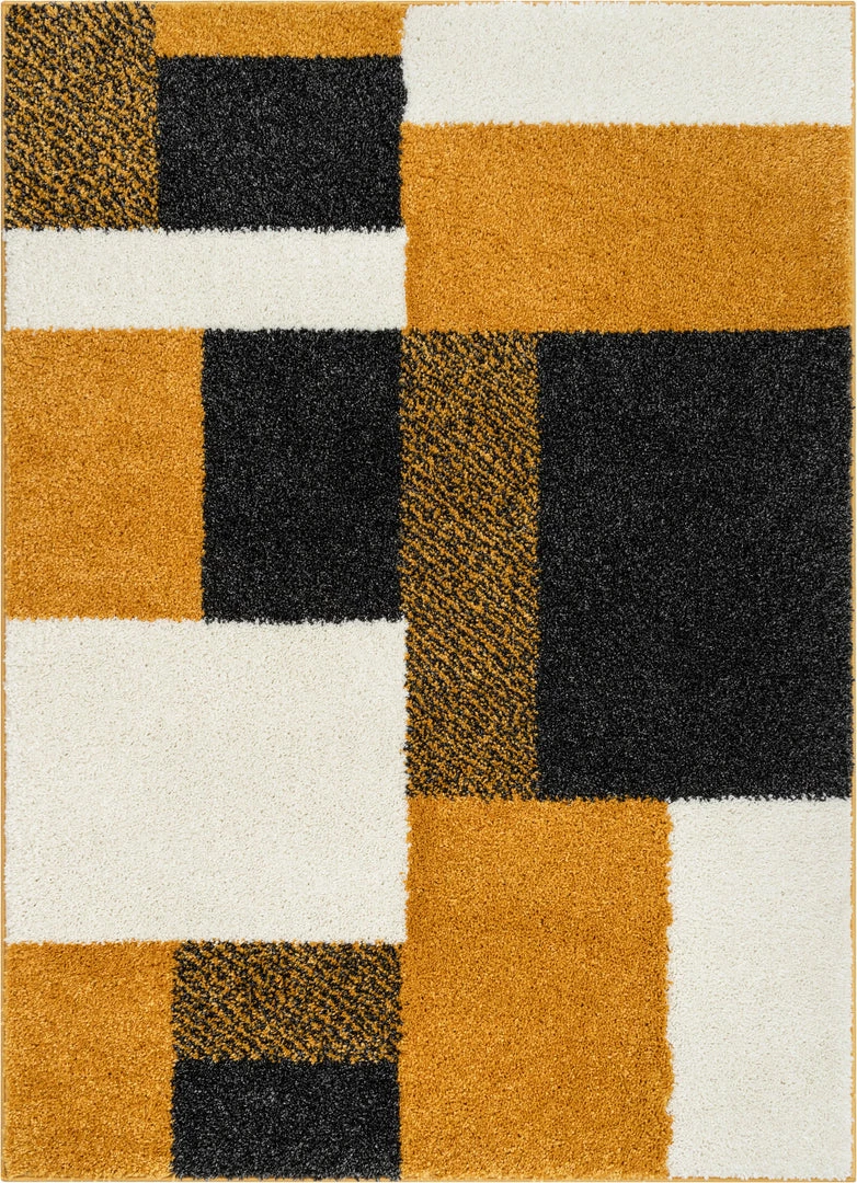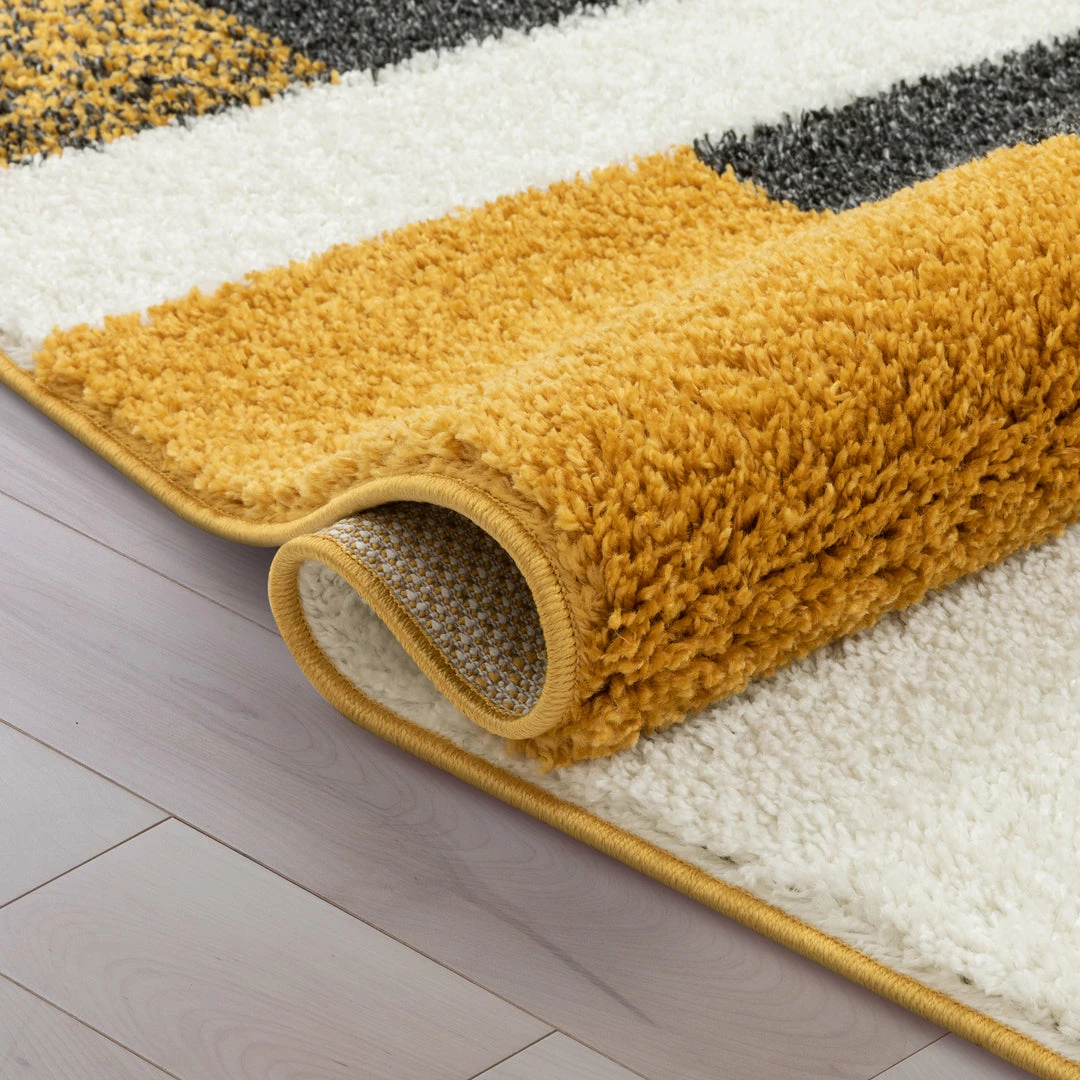Well Woven Cubes Geometric Boxes & Squares Gold Grey Thick Shag Rug