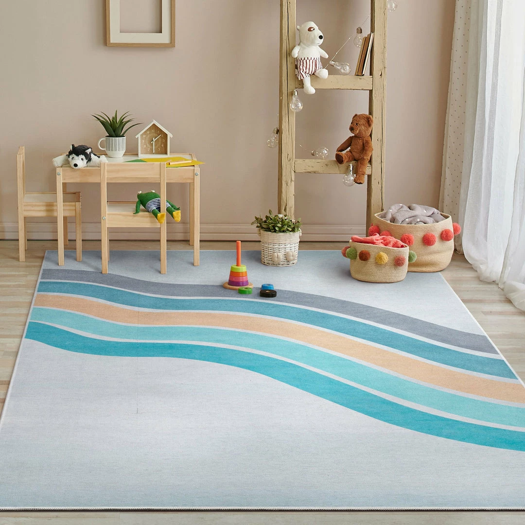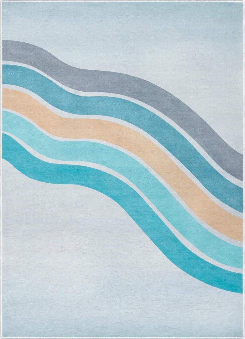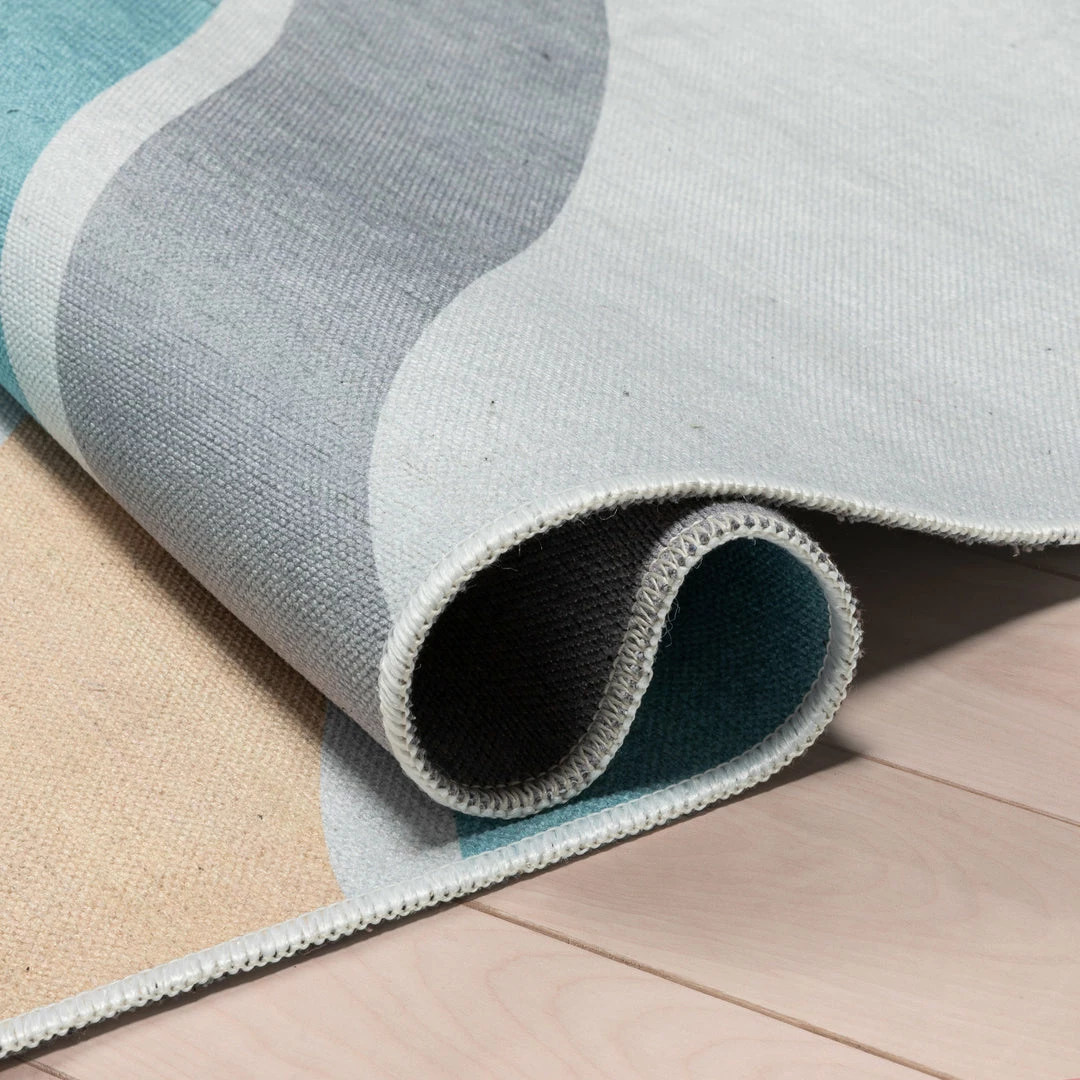 Well Woven Curved Rainbow Modern Multi Color Blue Flat-Weave Washable Area Rug