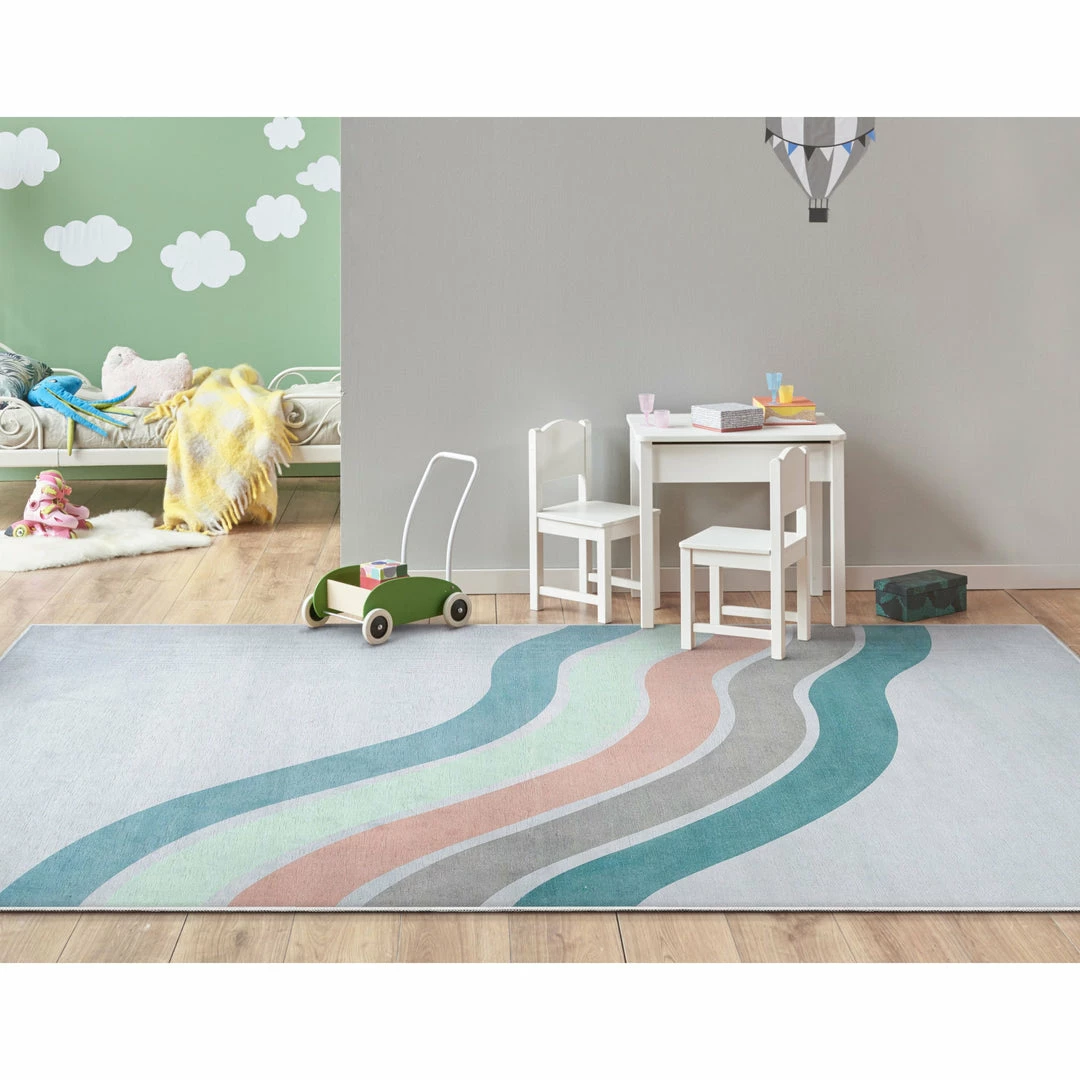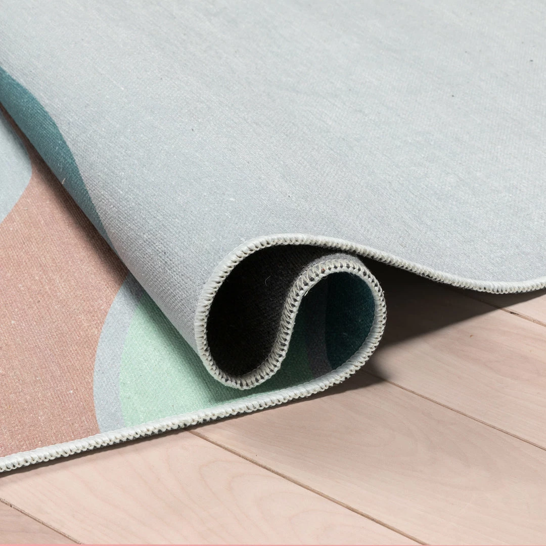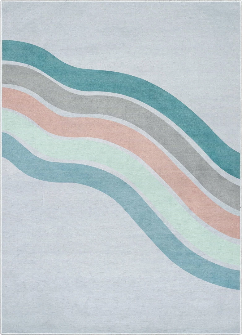 Well Woven Curved Rainbow Modern Multi Color Green Flat-Weave Washable Area Rug Machine Washable