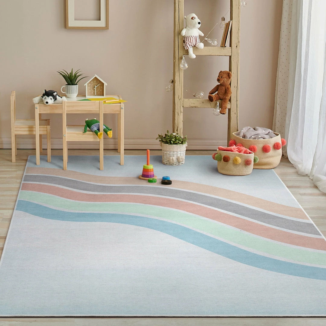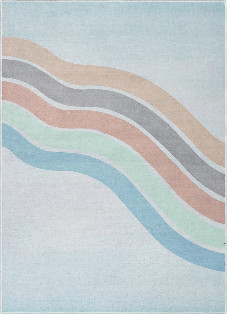 Well Woven Curved Rainbow Modern Multi Color Pastel Flat-Weave Washable Area Rug Machine Washable