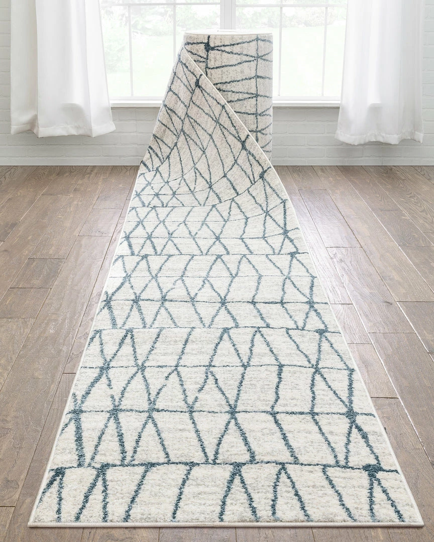 Well Woven Custom Size Runner Crisscross Retro Geometric Pattern Blue Ivory Choose Your Width X Choose Your Length Hallway Runner Rug