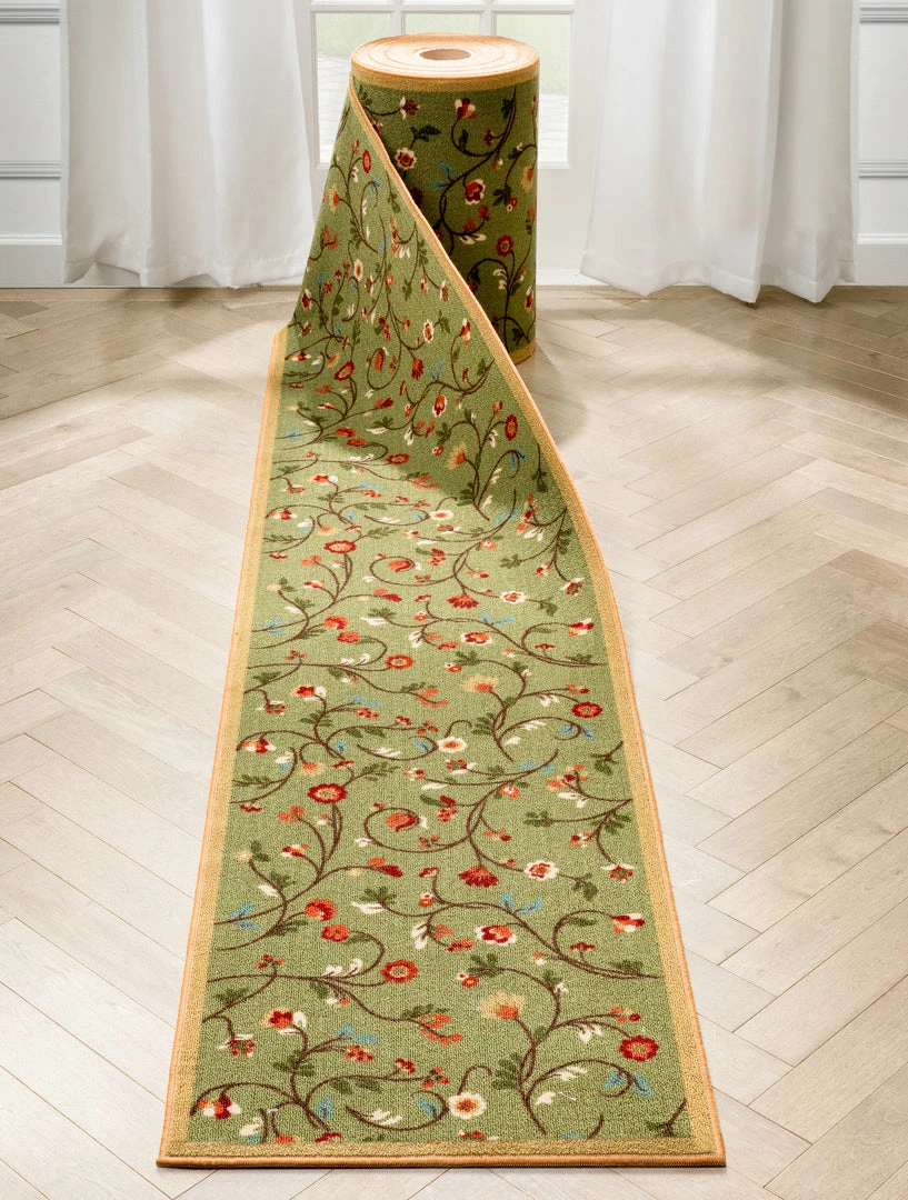 Well Woven Custom Size Runner Judith Transitional Botanical Floral Green 22 Inch Wide X Choose Your Length Machine Washable Hallway Runner Rug