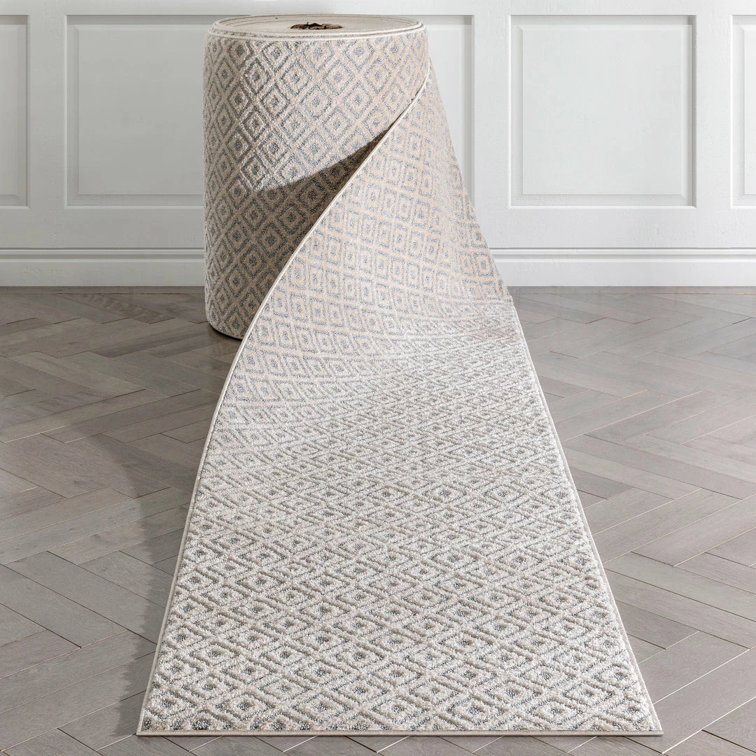 Well Woven Custom Size Runner Pia Tribal Geometric Diamond Pattern Light Grey/Beige Choose Your Width X Choose Your Length Hallway Runner Rug Global