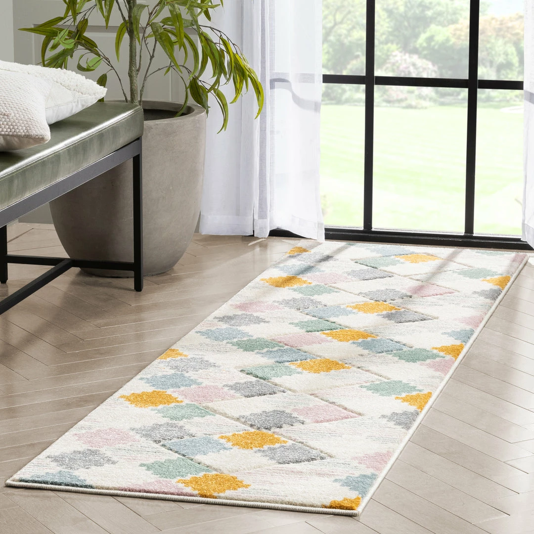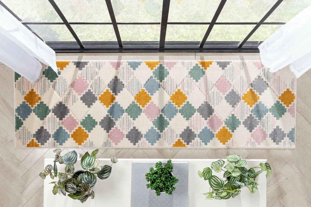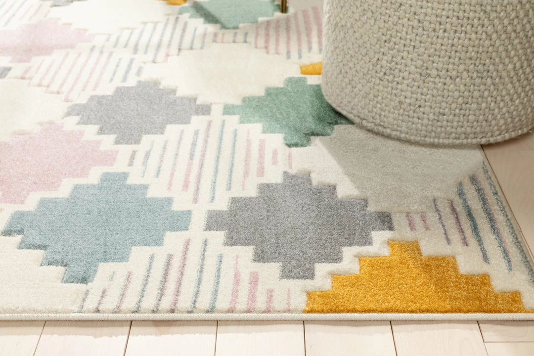 Bright, playful colors and dynamic geometric patterns give the Astrid Collection a style that’s at once sharply modern and intimately cozy. The pattern accents are hand-beveled for a unique visual texture that’s soft under hand and plush underfoot.