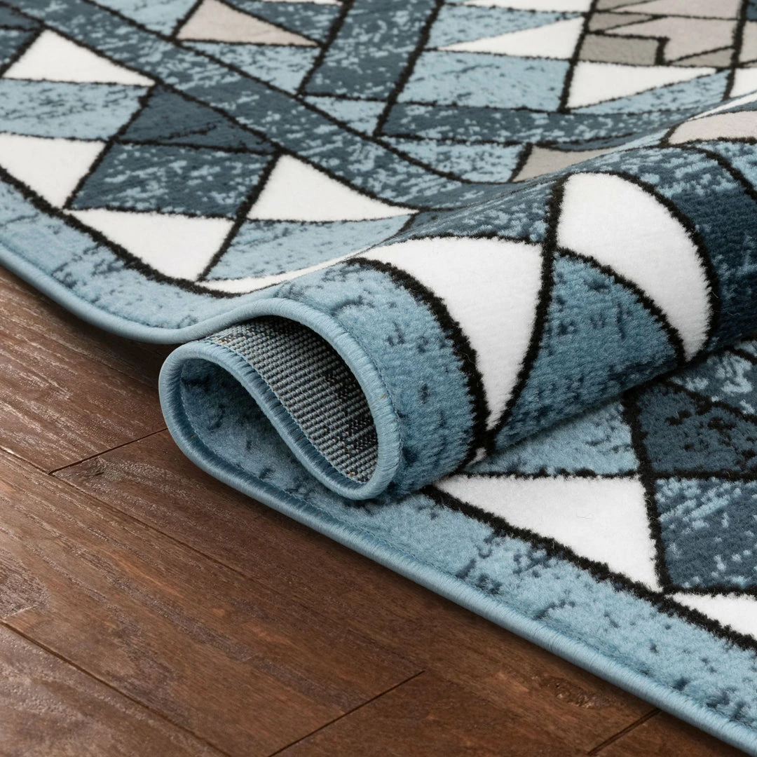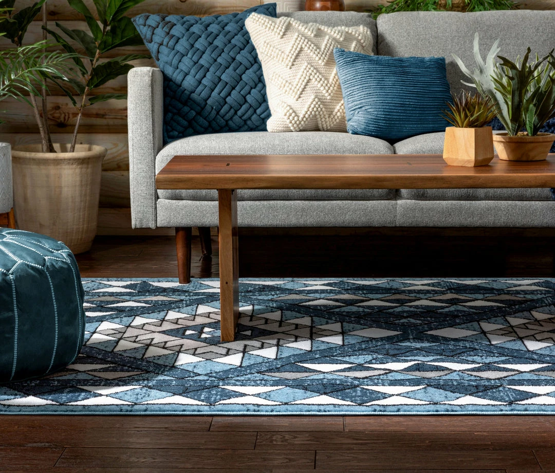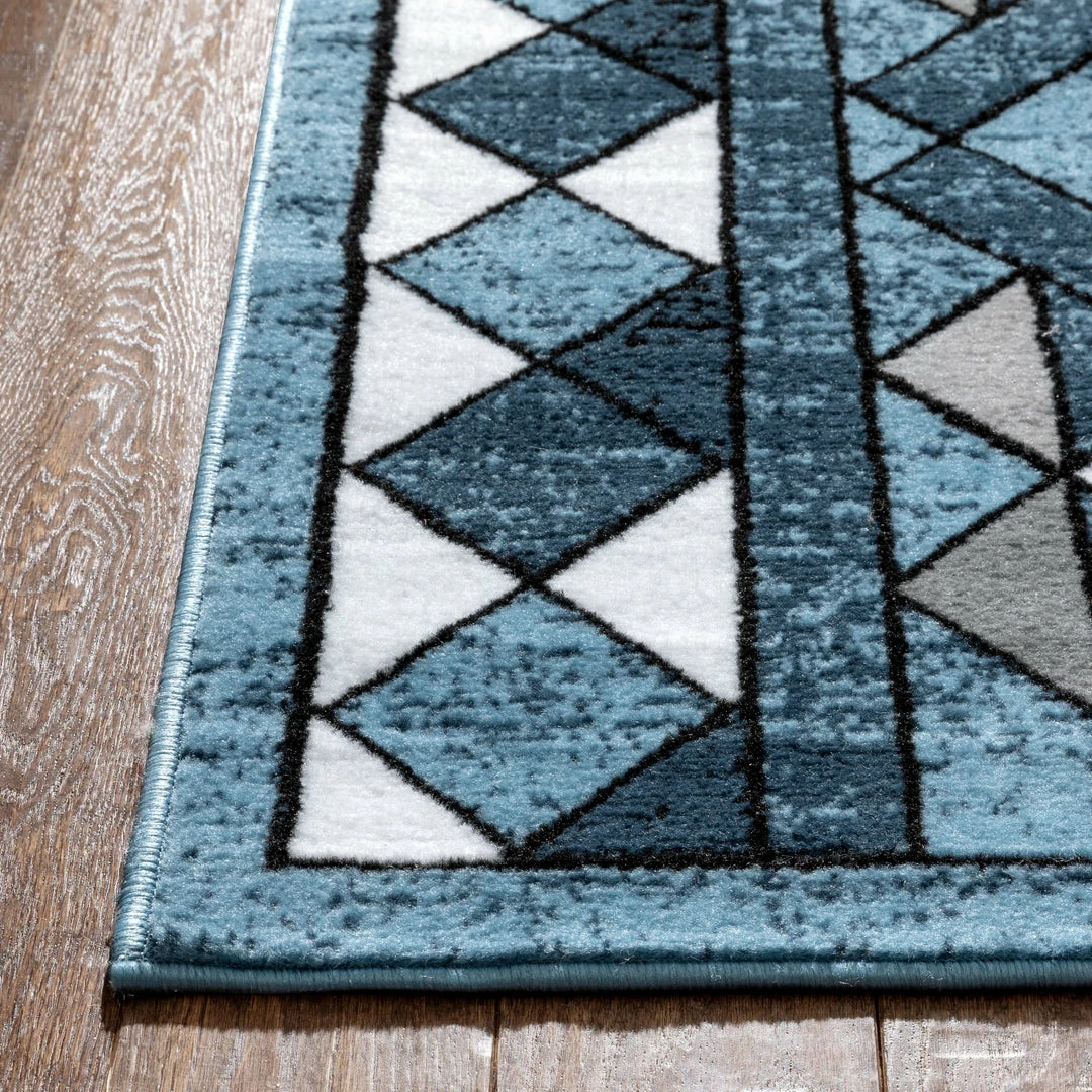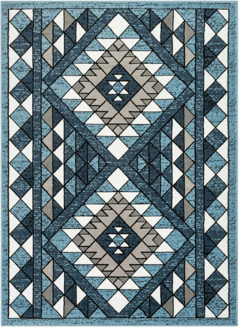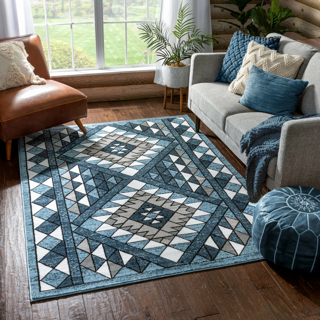 Well Woven Enola Tribal Geometric Trellis Blue Rug