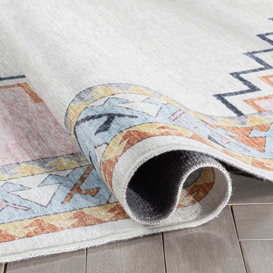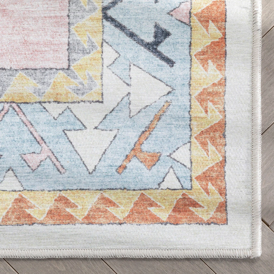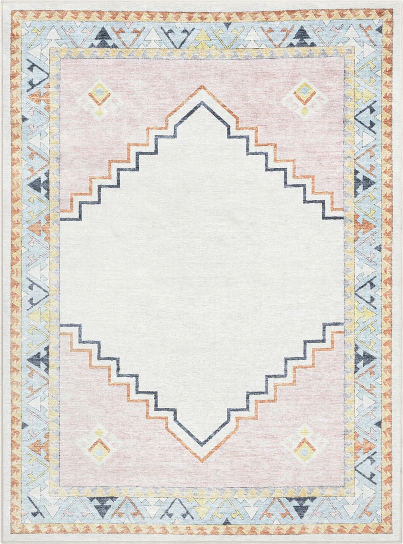 Well Woven Ethnic Soft Medallion Modern Pink Beige Flat-Weave Washable Kids Rug