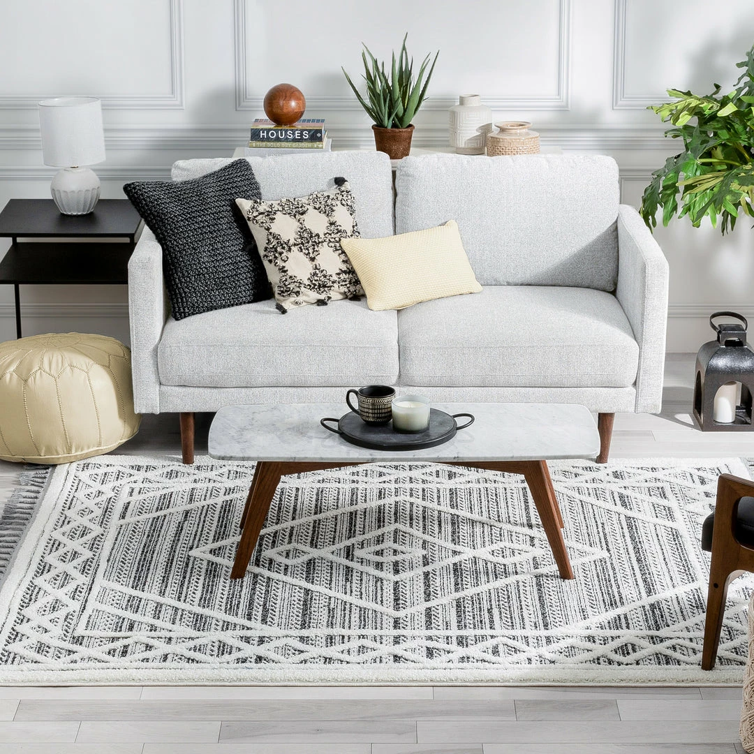 Well Woven Everly Tribal Trellis Diamond Pattern Black High-Low Textured Rug