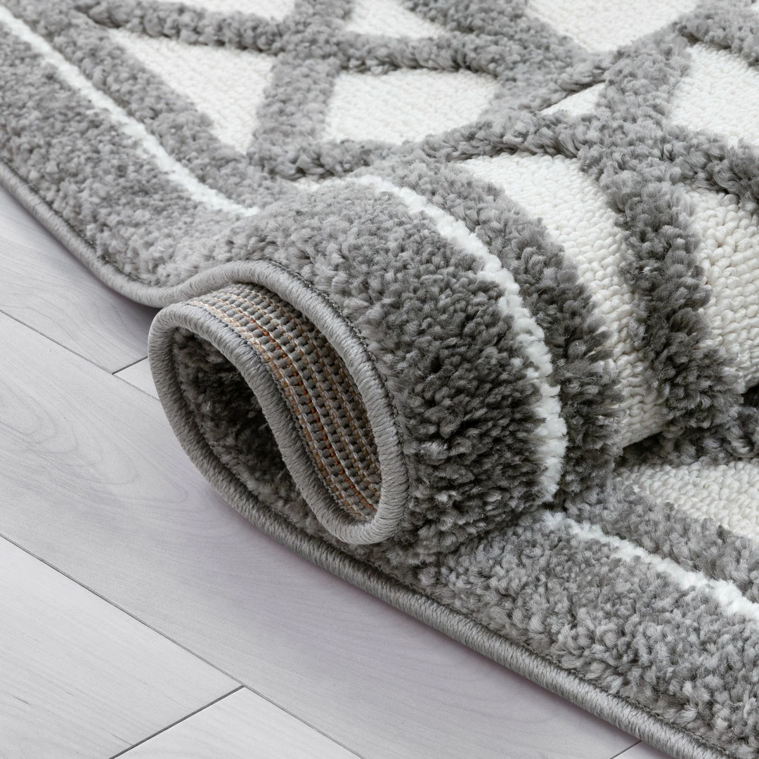 - Cut and loop, 0.4″ high-low pile.