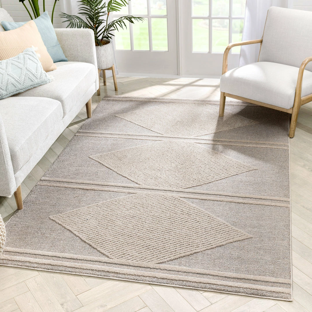 Well Woven Evie Tribal Diamond Medallion Pattern Beige Looped Pile Rug Global