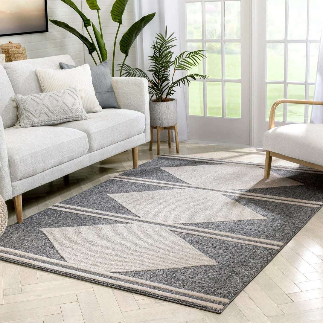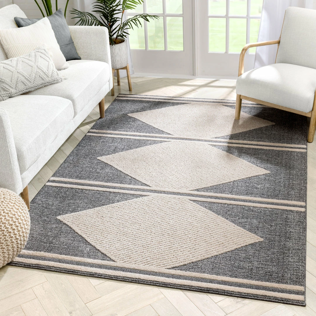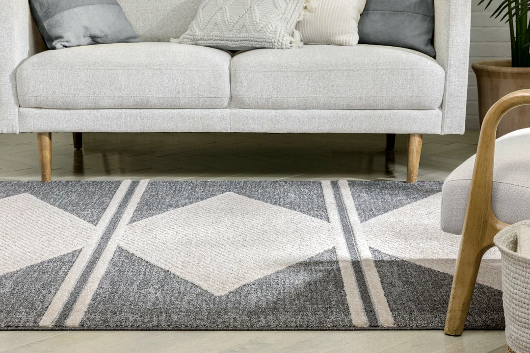 Well Woven Evie Tribal Diamond Medallion Pattern Grey Looped Pile Rug