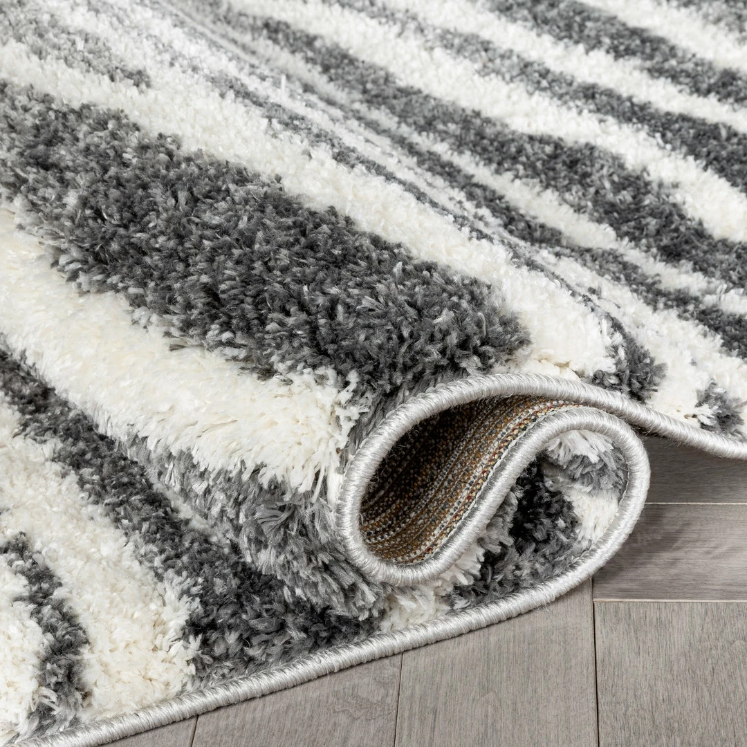 Well Woven Faro Modern Coastal Waves Pattern Dark Grey Thick & Soft Shag Rug Tribal