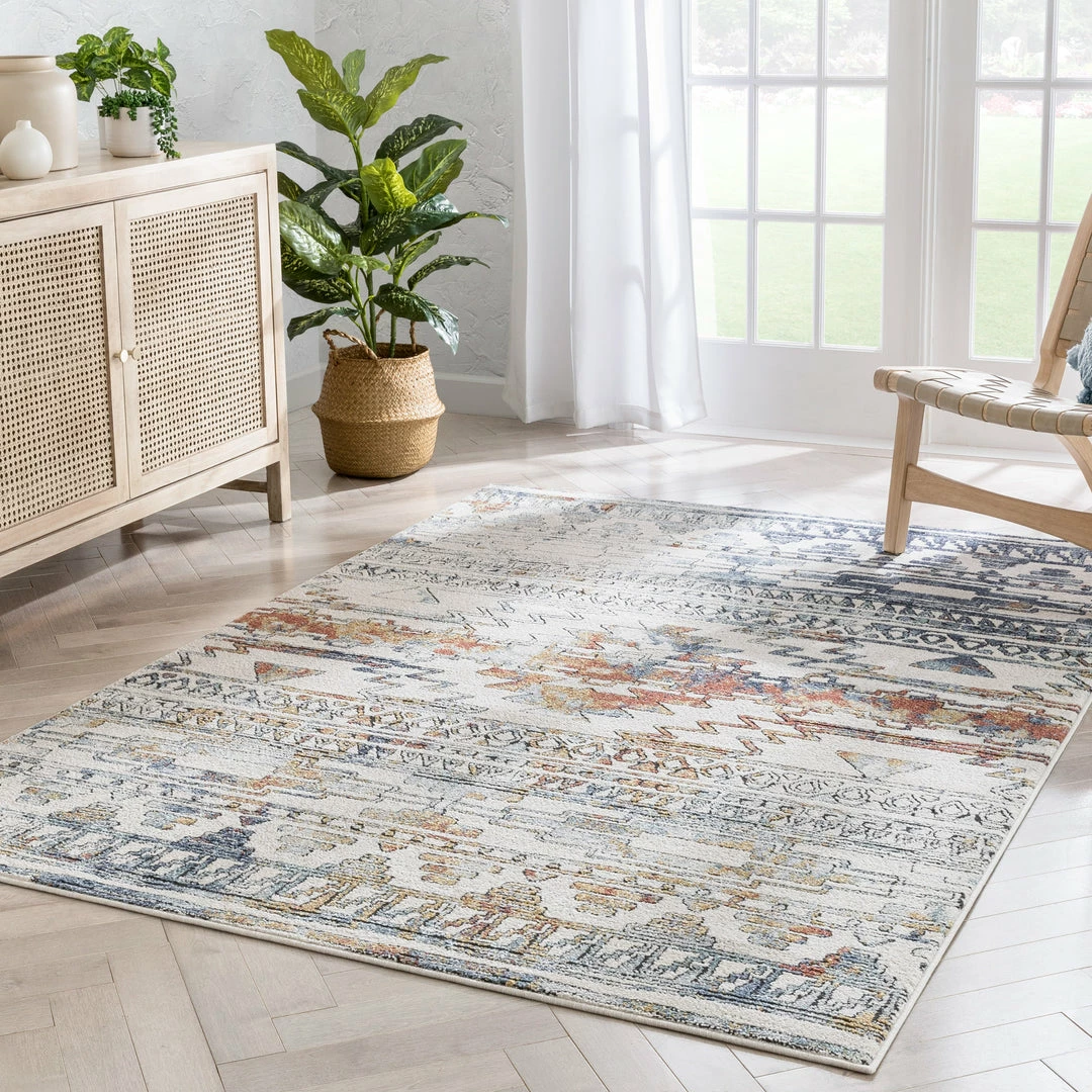 Well Woven Forli Southwestern Aztec Ivory Blue Rug