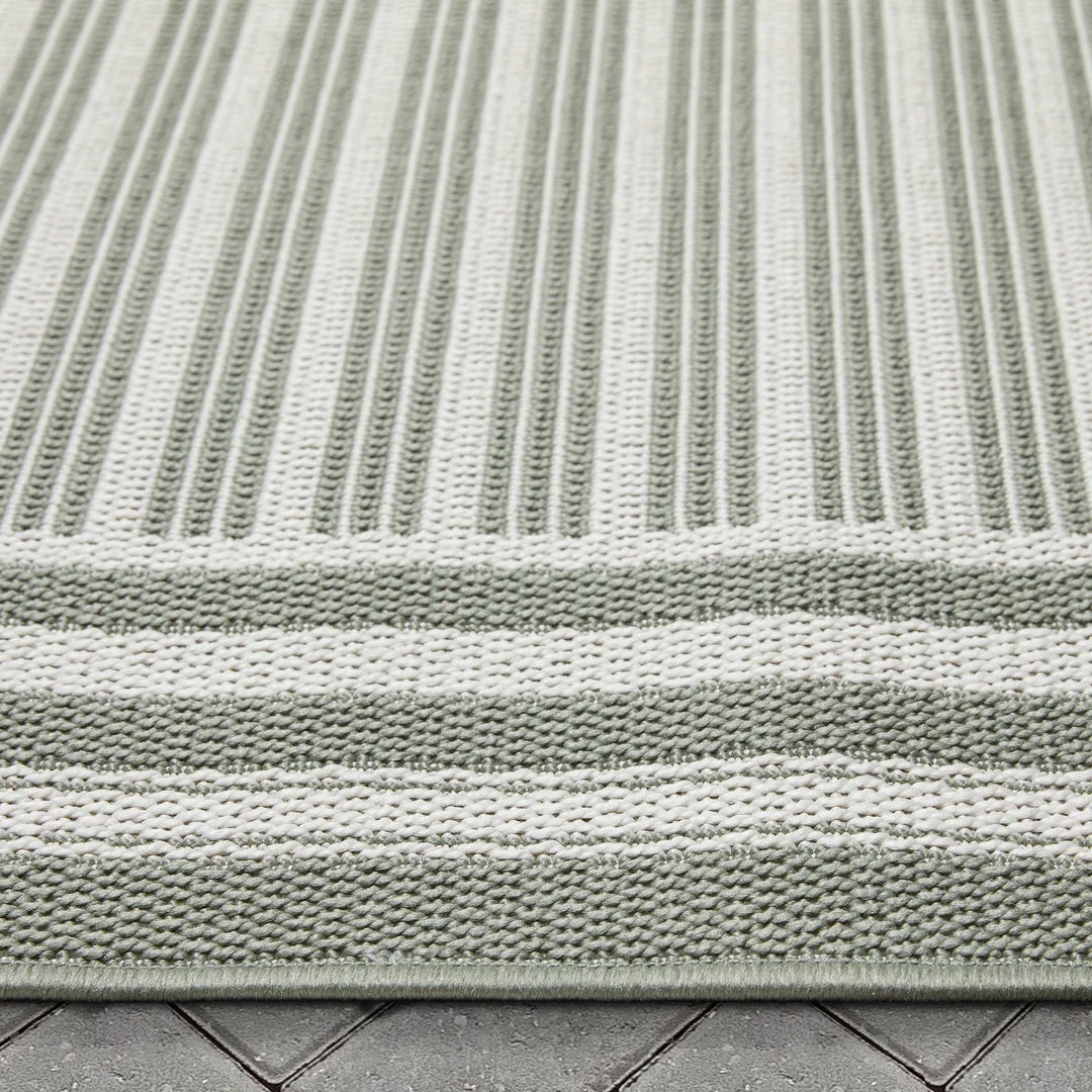 Well Woven Frankie Modern Stripes Indoor/Outdoor Green Textured Rug
