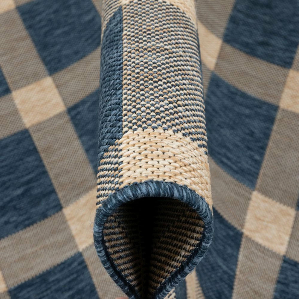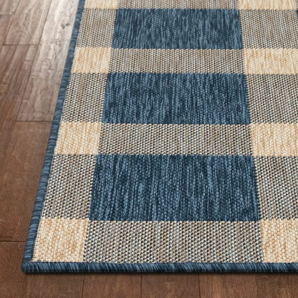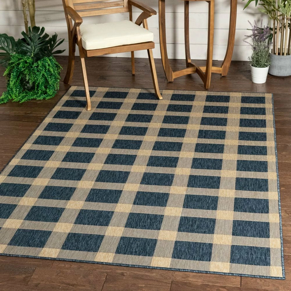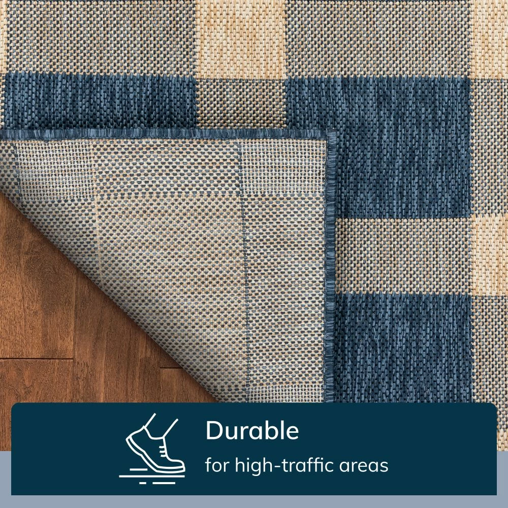 Well Woven Freya Plaid Indoor Outdoor Blue Flatweave Rug
