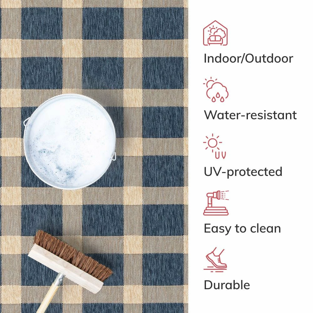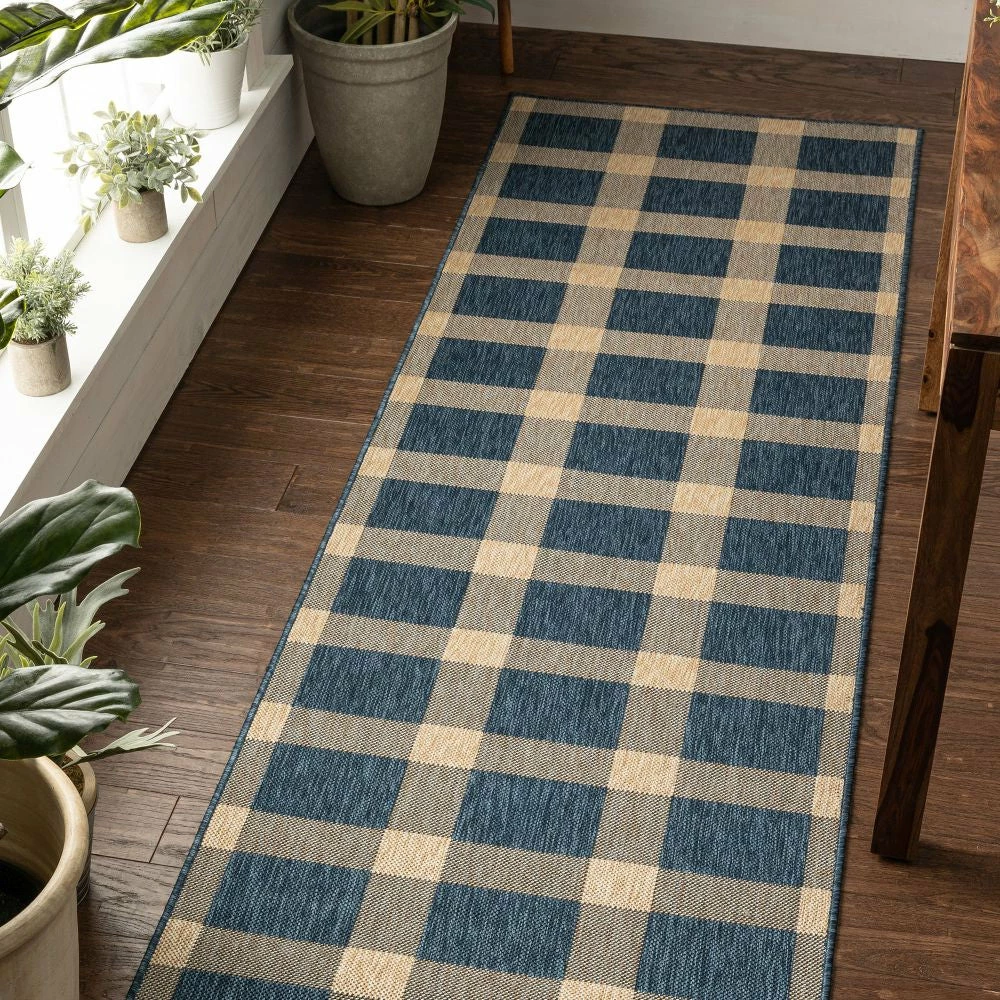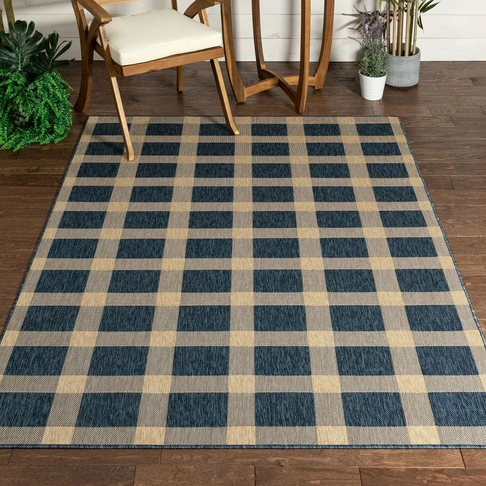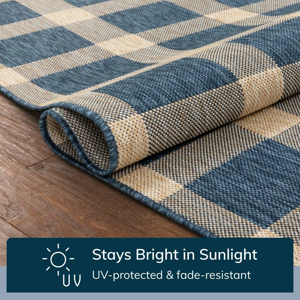 Well Woven Freya Plaid Indoor Outdoor Blue Flatweave Rug