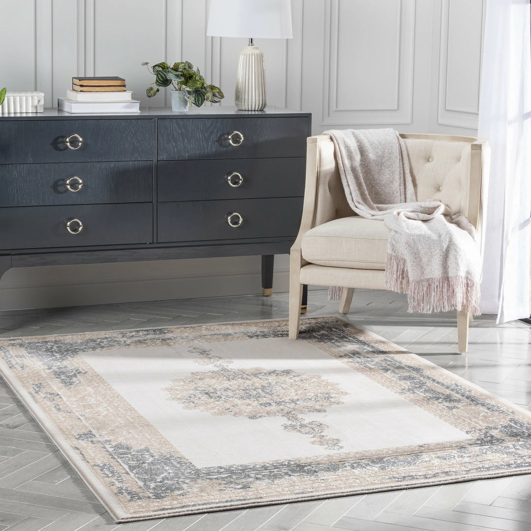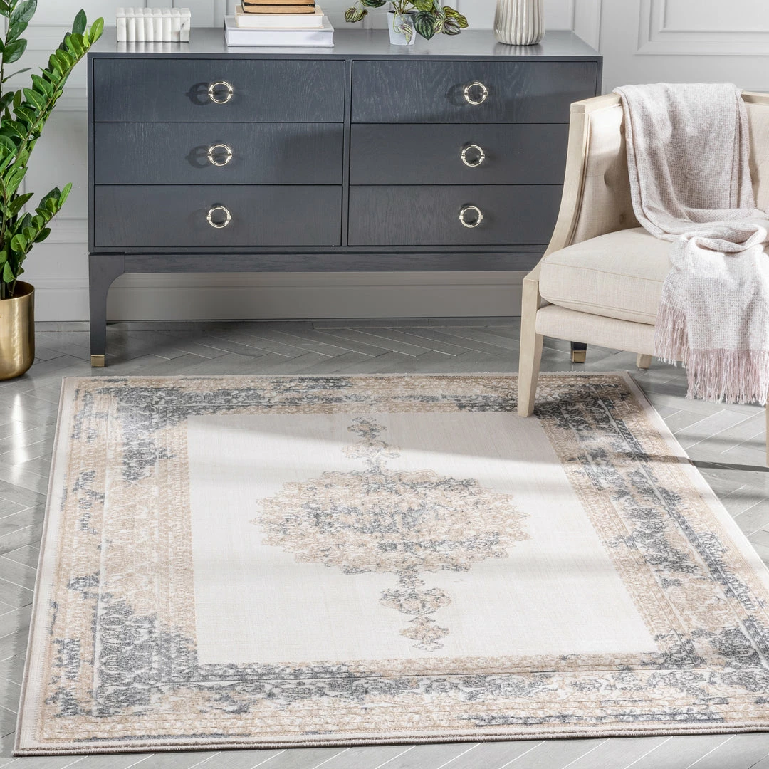 Well Woven Gemma Vintage Medallion Oriental Ivory Glam Rug