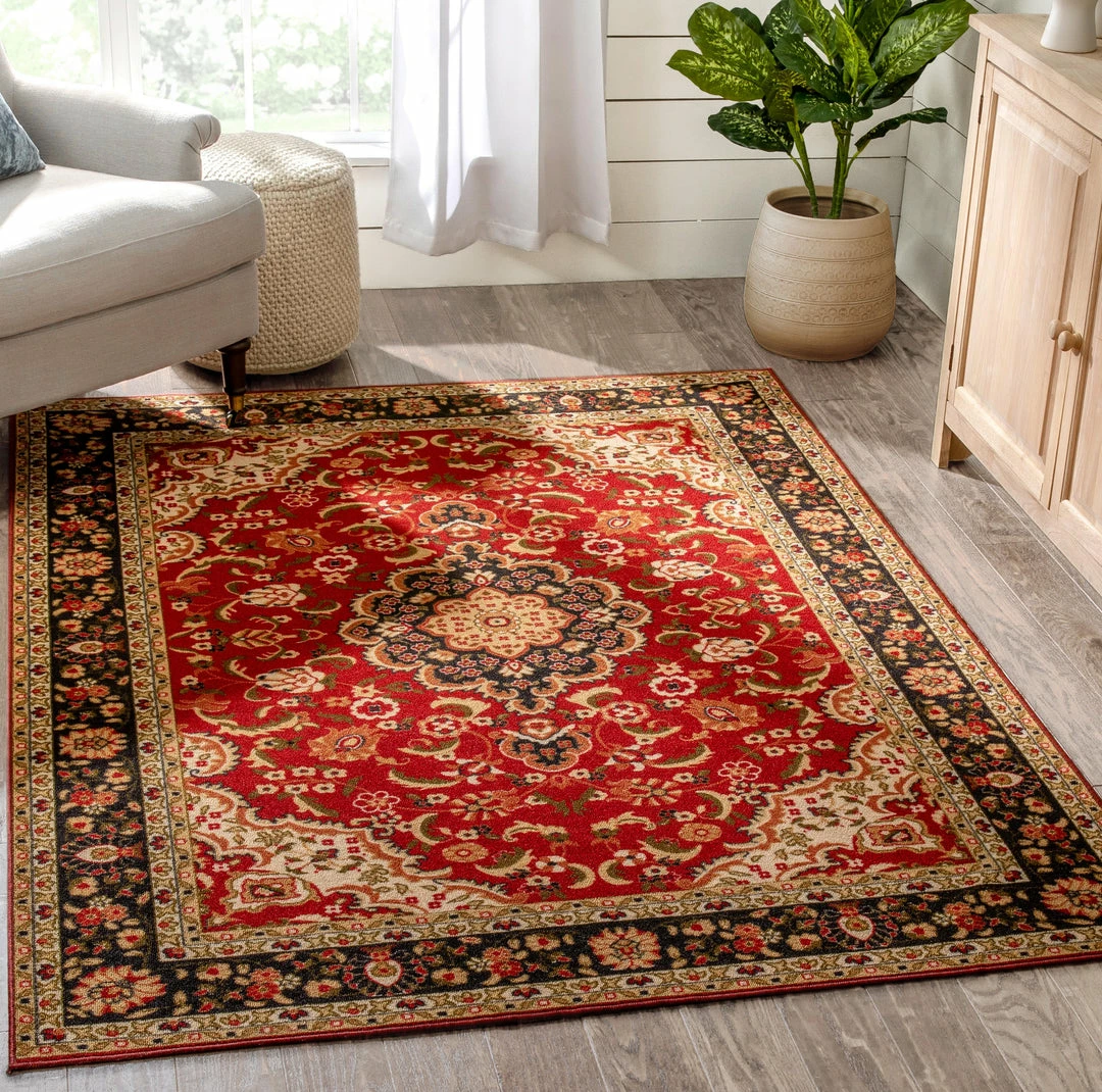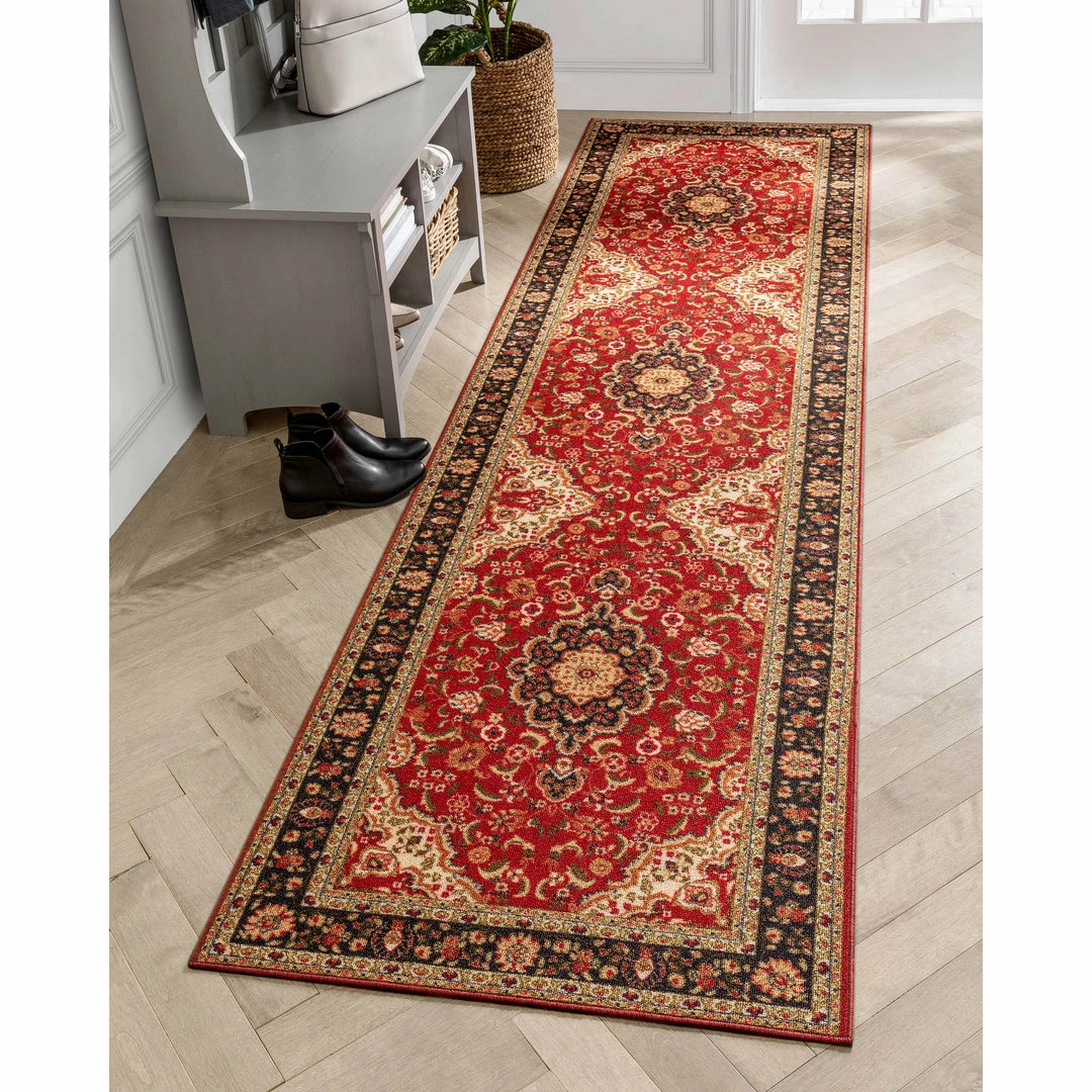 The King’s Court collection is all about convenient decoration for a busy home. The looped nylon pile measures a low 0.3″ so the rug traps less dirt and is more resistant to wear. A non-skid rubber backing eliminates the need for a rug pad and is safe for all types of floor. These rugs are machine washable, fade resistant, and serged on all sides for durability. They are easy to maintain and built to last. And with a variety of patterns from cutting edge and modern, to traditional, to kitchen cozy, you can put them anywhere.