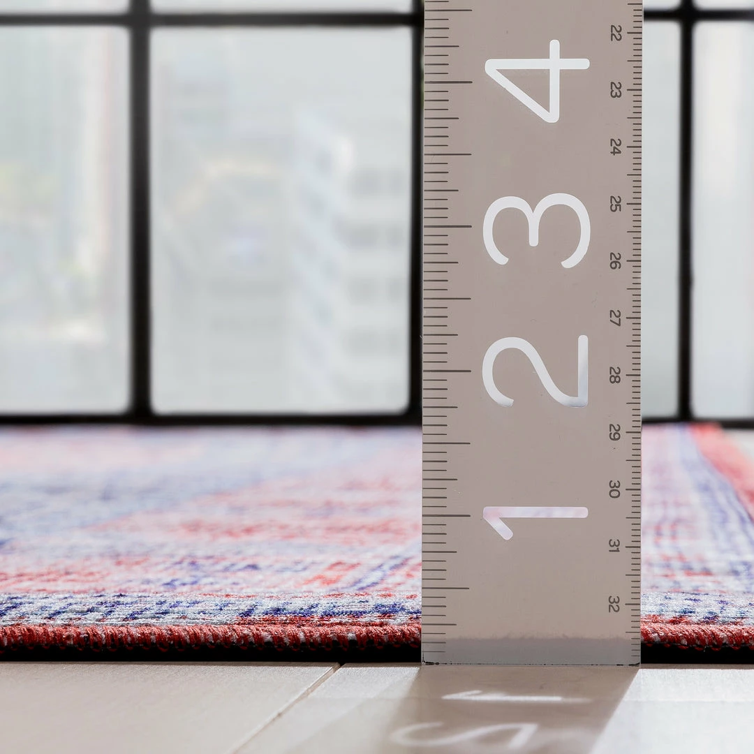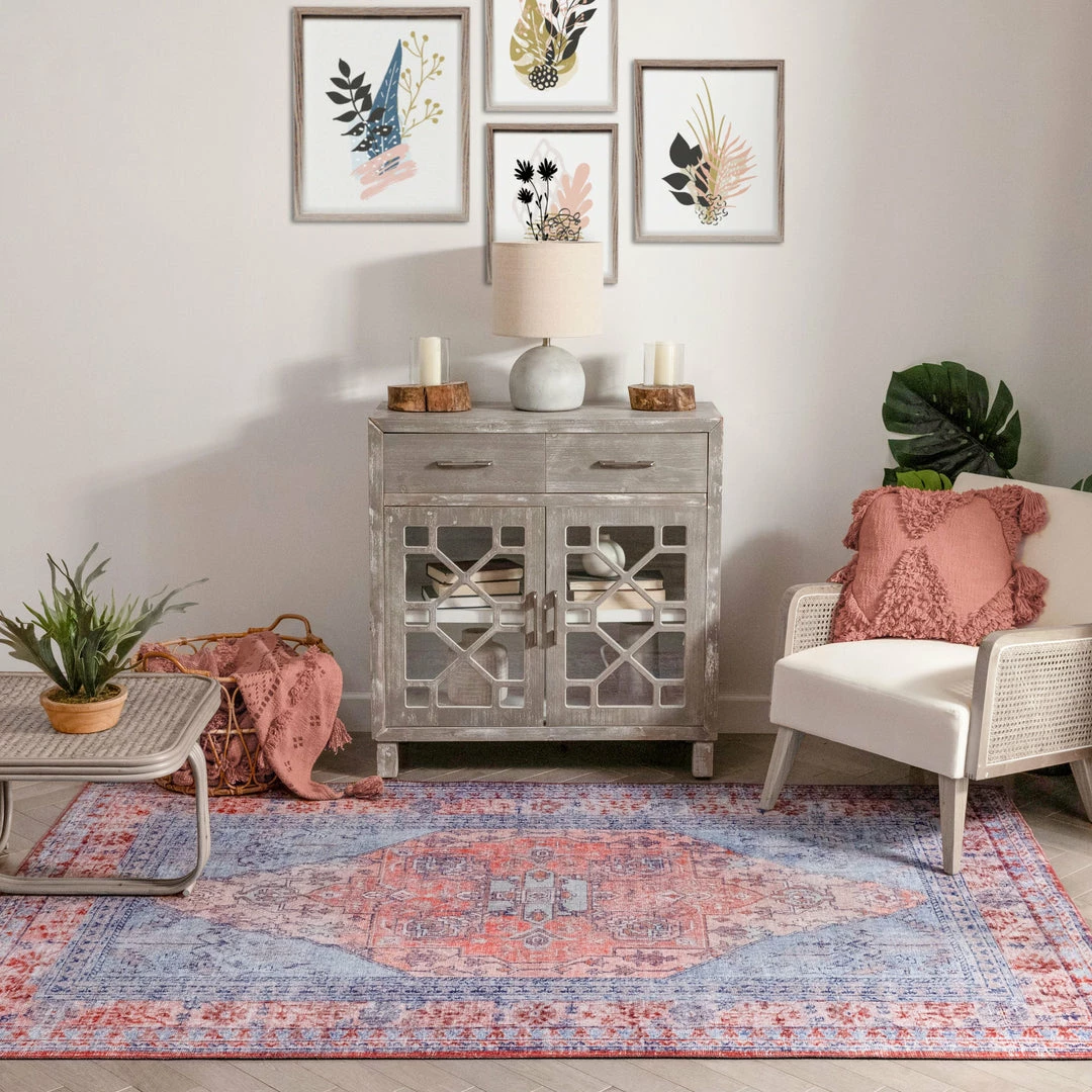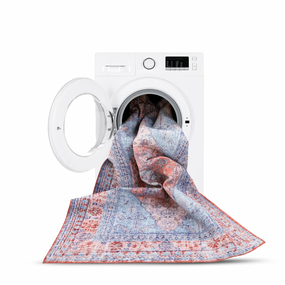 Well Woven Gila Machine Washable Vintage Bohemian Medallion Oriental Blue Red Flat-Weave Distressed Rug