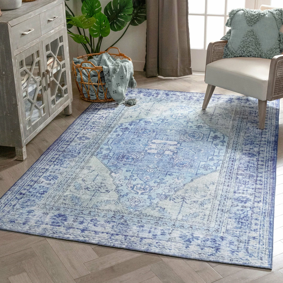 The machine washable Nile collection combines contemporary colors, an elegant medallion pattern, a wood-floor-safe backing, and durable construction for a modern and convenient rug. The kid and pet safe materials are stain resistant and easy to spot clean, making these rugs ideal for a busy family.