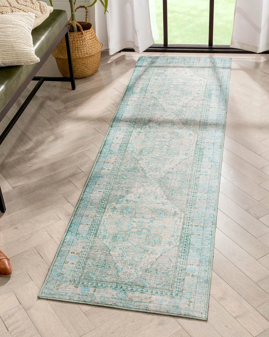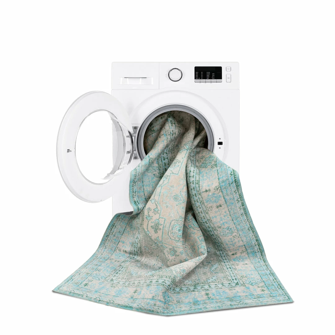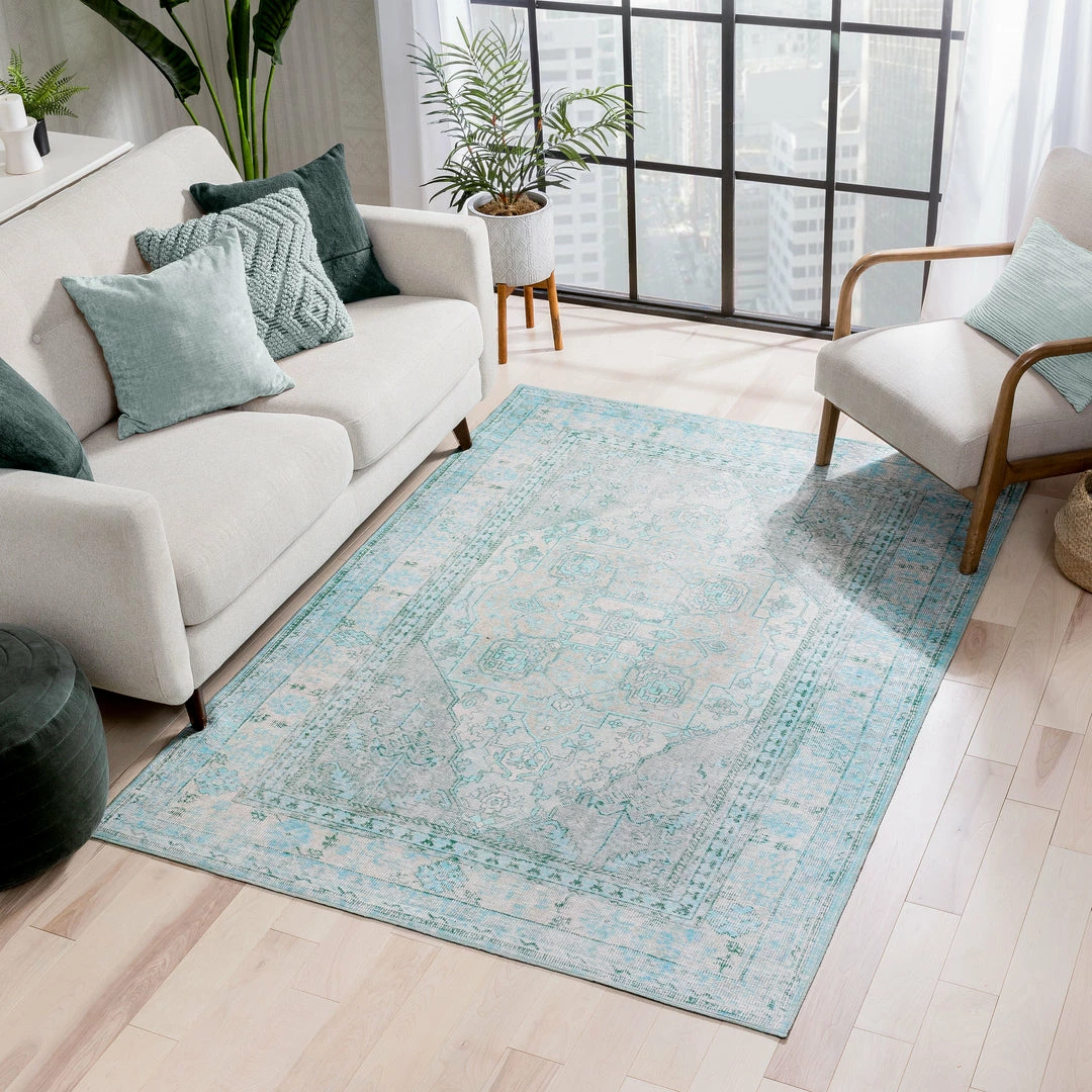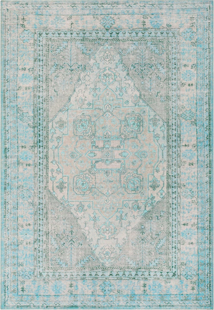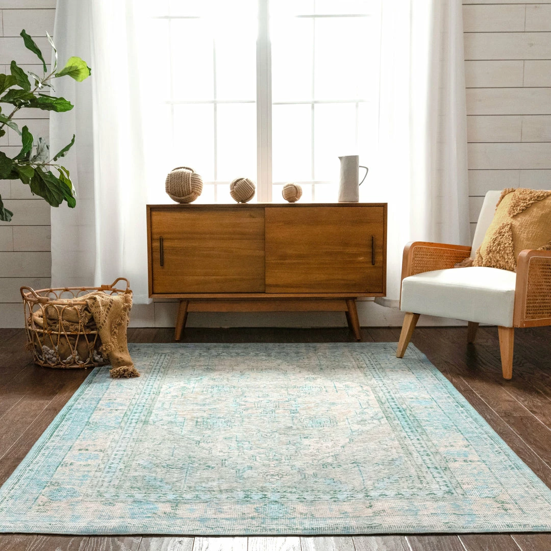 Well Woven Gila Machine Washable Vintage Bohemian Medallion Oriental Green Flat-Weave Distressed Rug Global