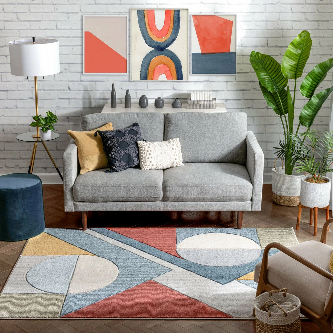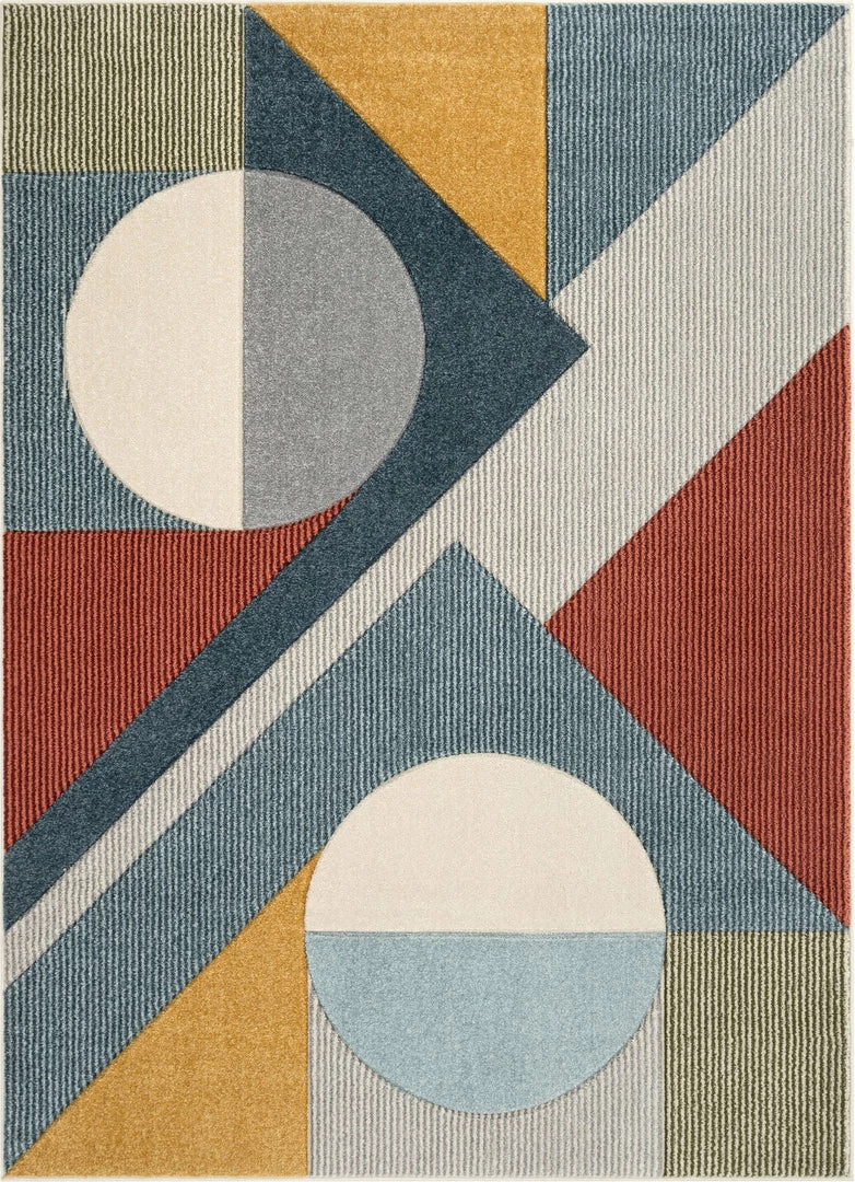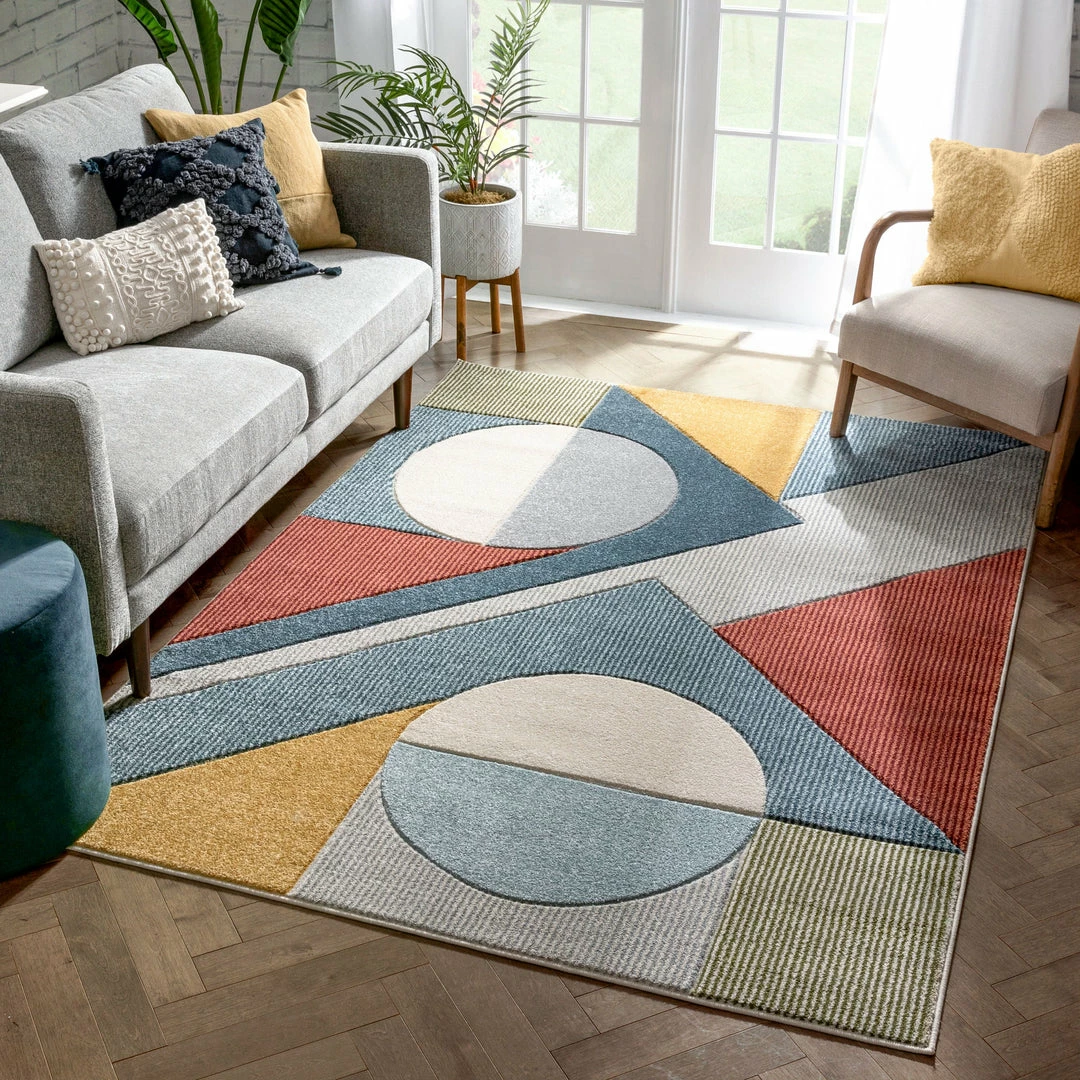 Well Woven Glimmer Mid-Century Modern Geometric Pattern Multi Distressed High-Low Rug